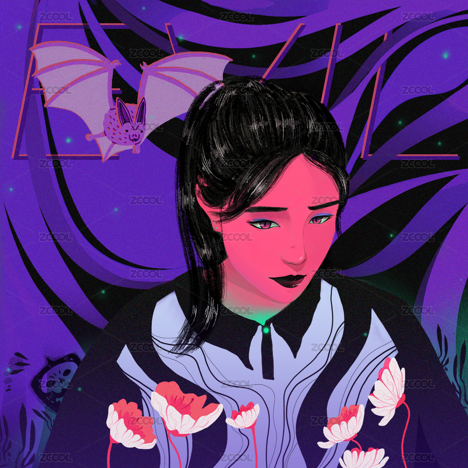 萬圣節(jié)哥特氣氛人物插畫