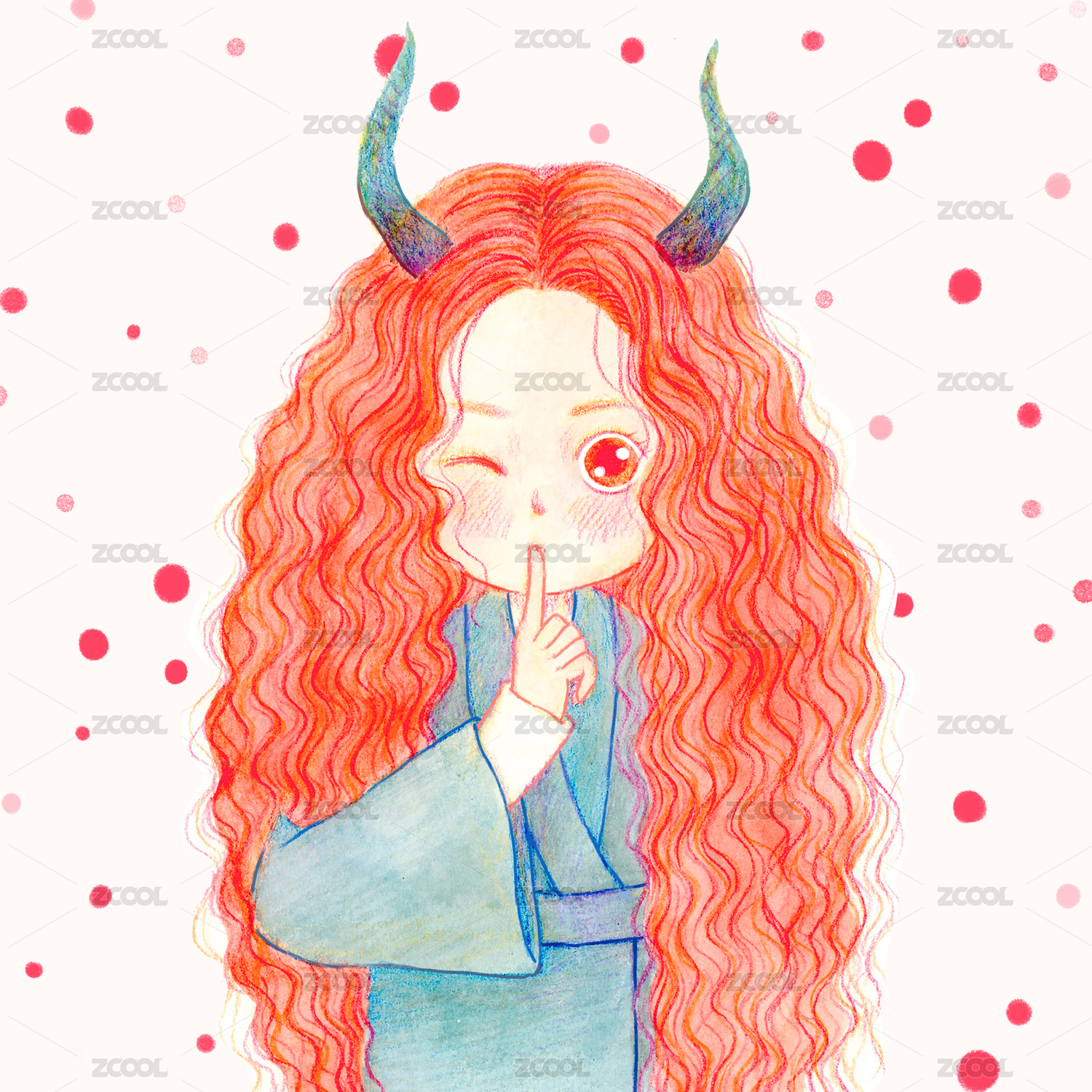 溫暖水彩-紅色頭發(fā)的小惡魔