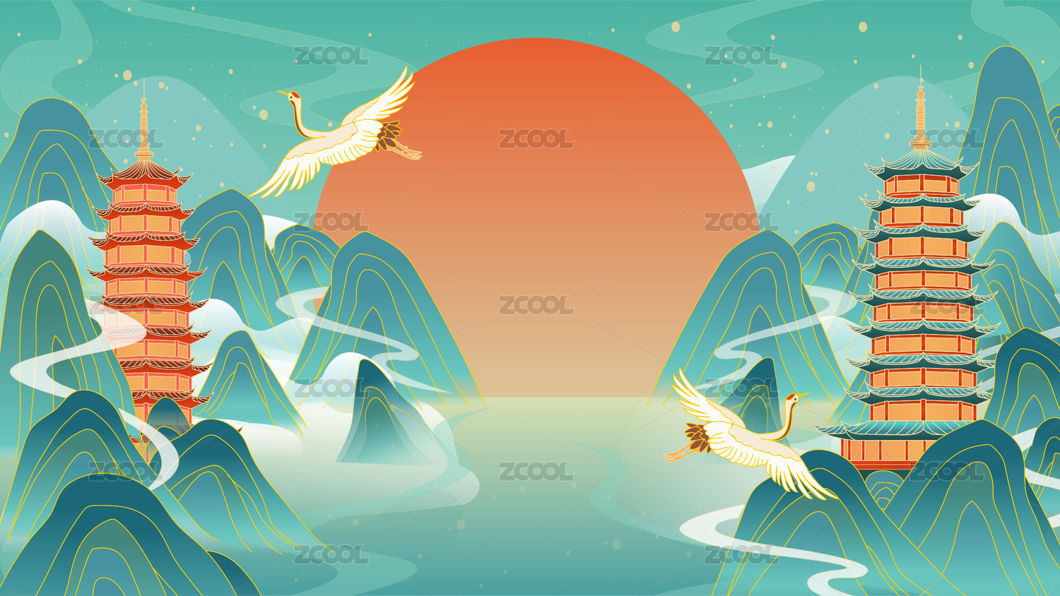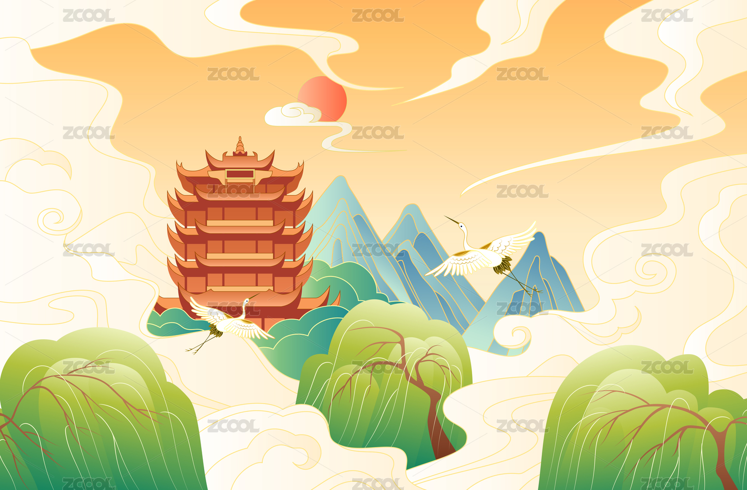 武漢黃鶴樓國潮城市風(fēng)景插畫