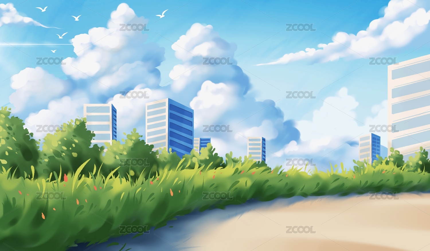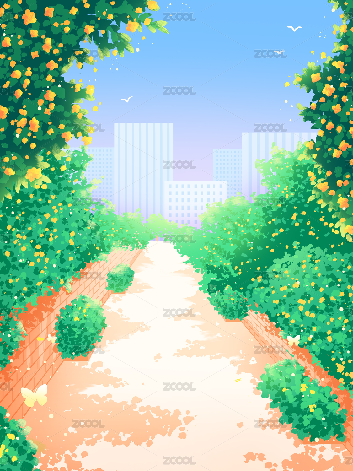 陽光下男女情侶約會聽歌城市風(fēng)景插畫