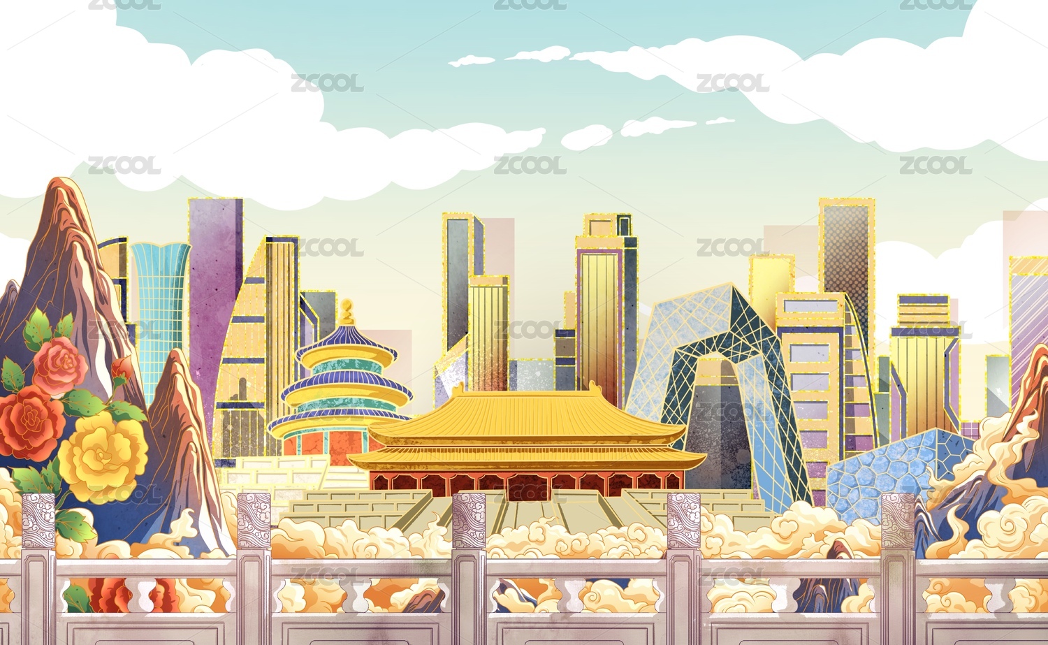 國慶中秋宮殿城市月亮風(fēng)景插畫