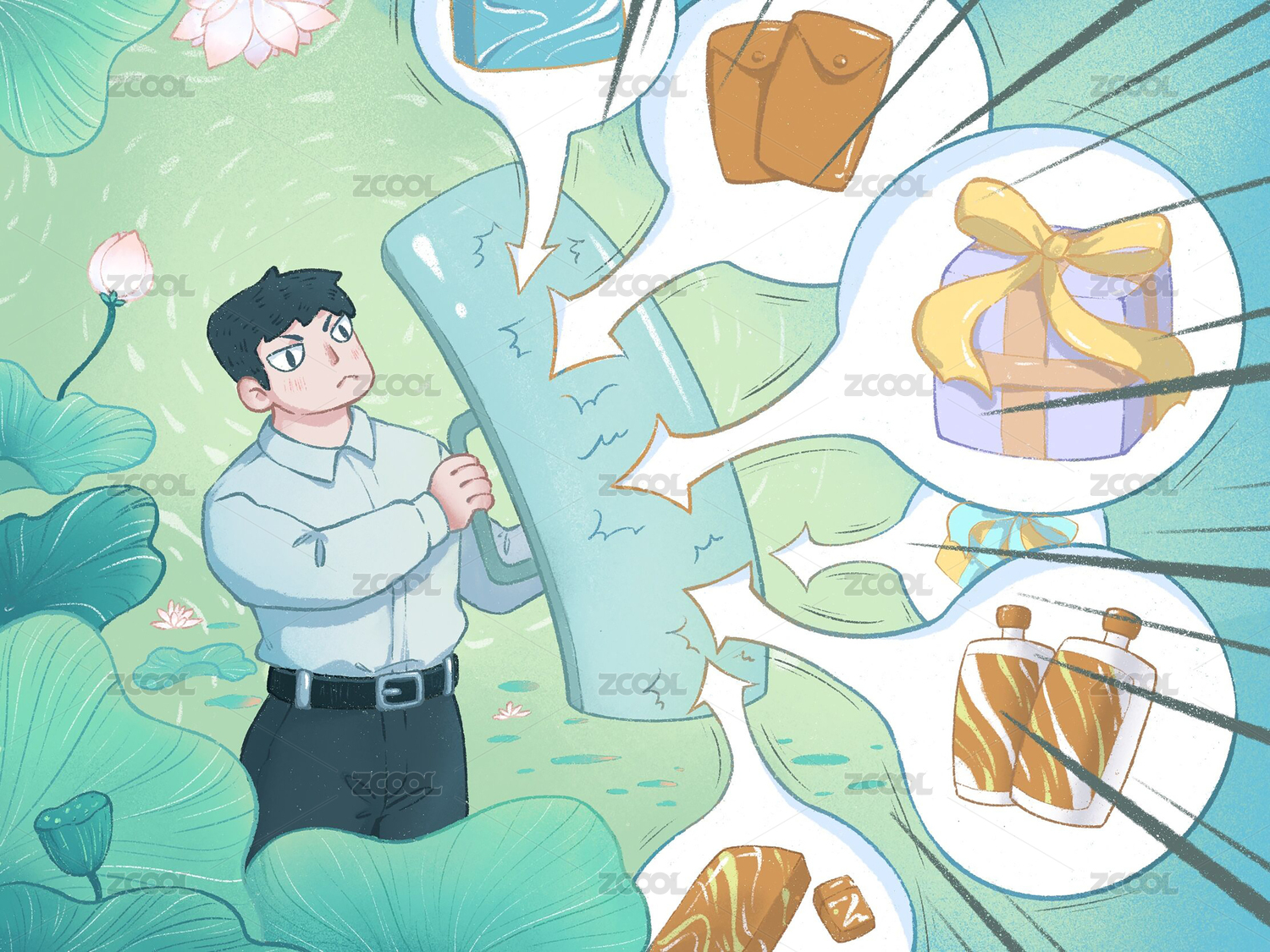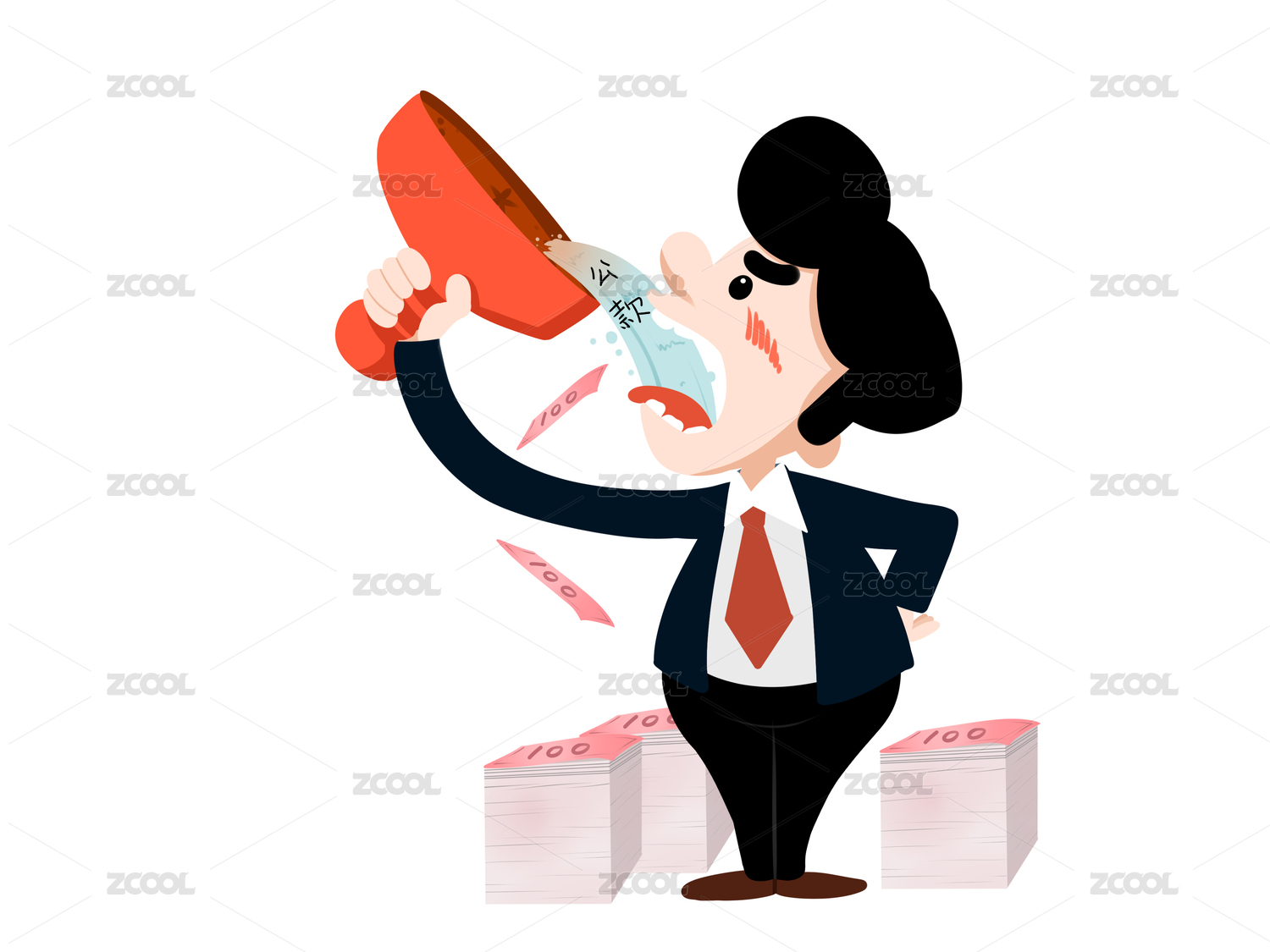 貪污漫畫人物印章錢幣男士手拿印章