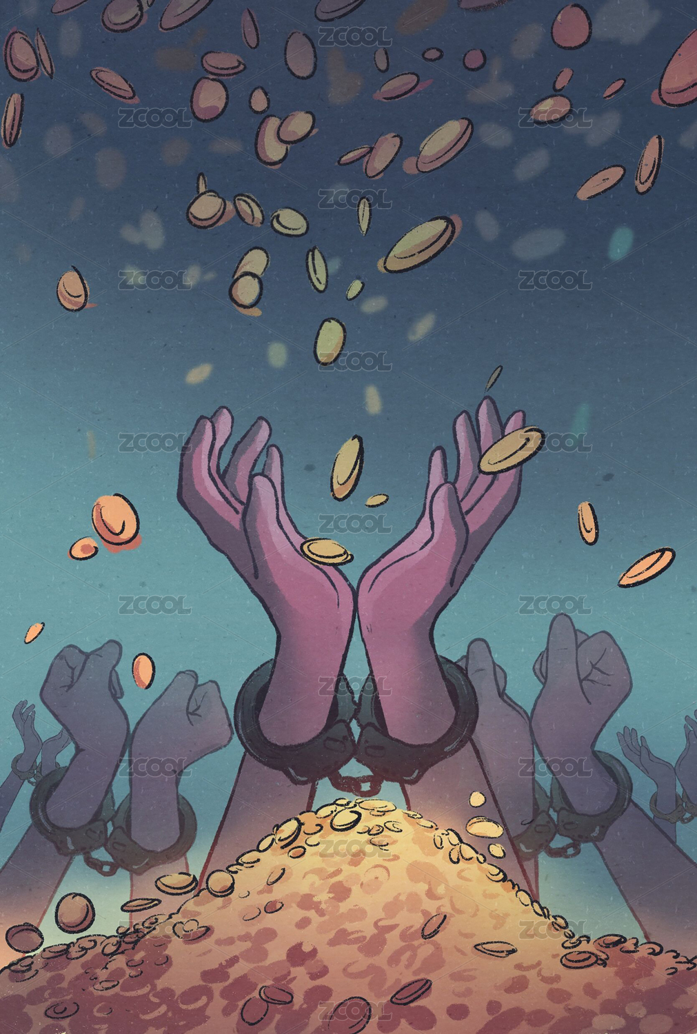 貪污漫畫管帽錢幣裝麻袋貪污金錢