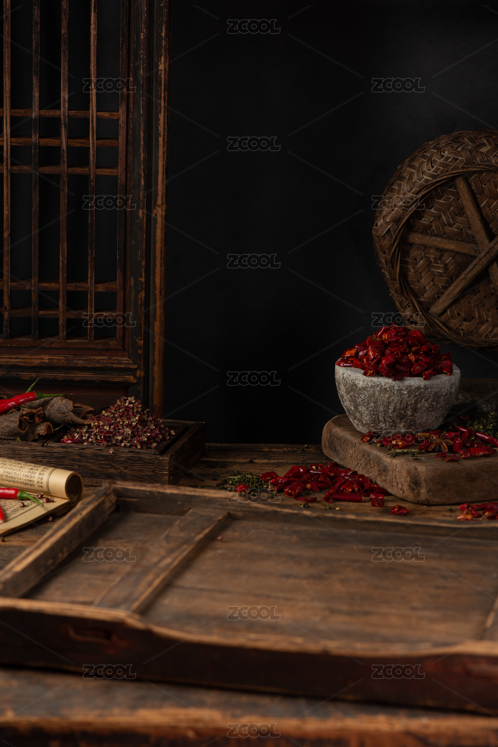 有木托盤石臼籮筐的中國風(fēng)電商美食背景