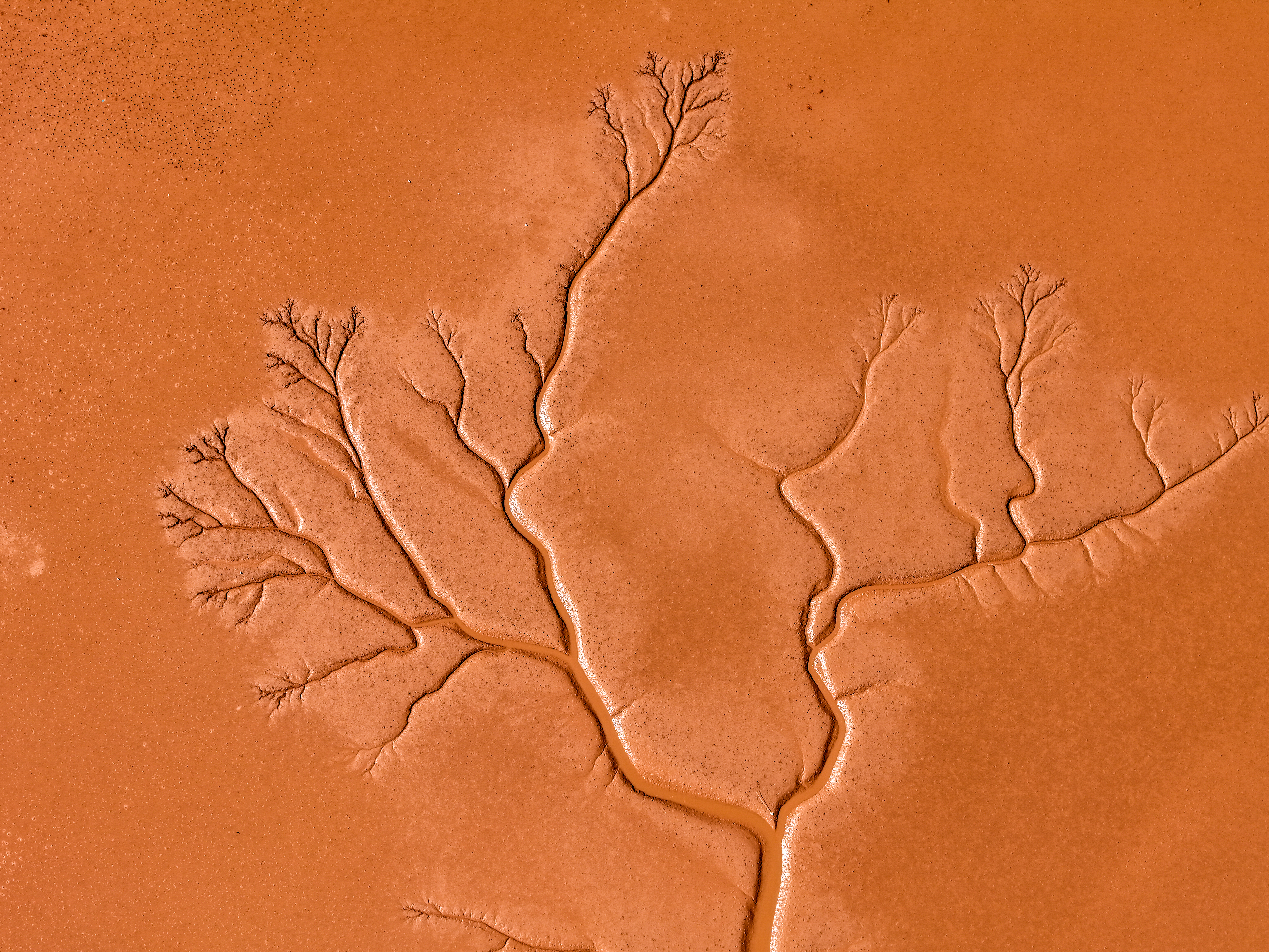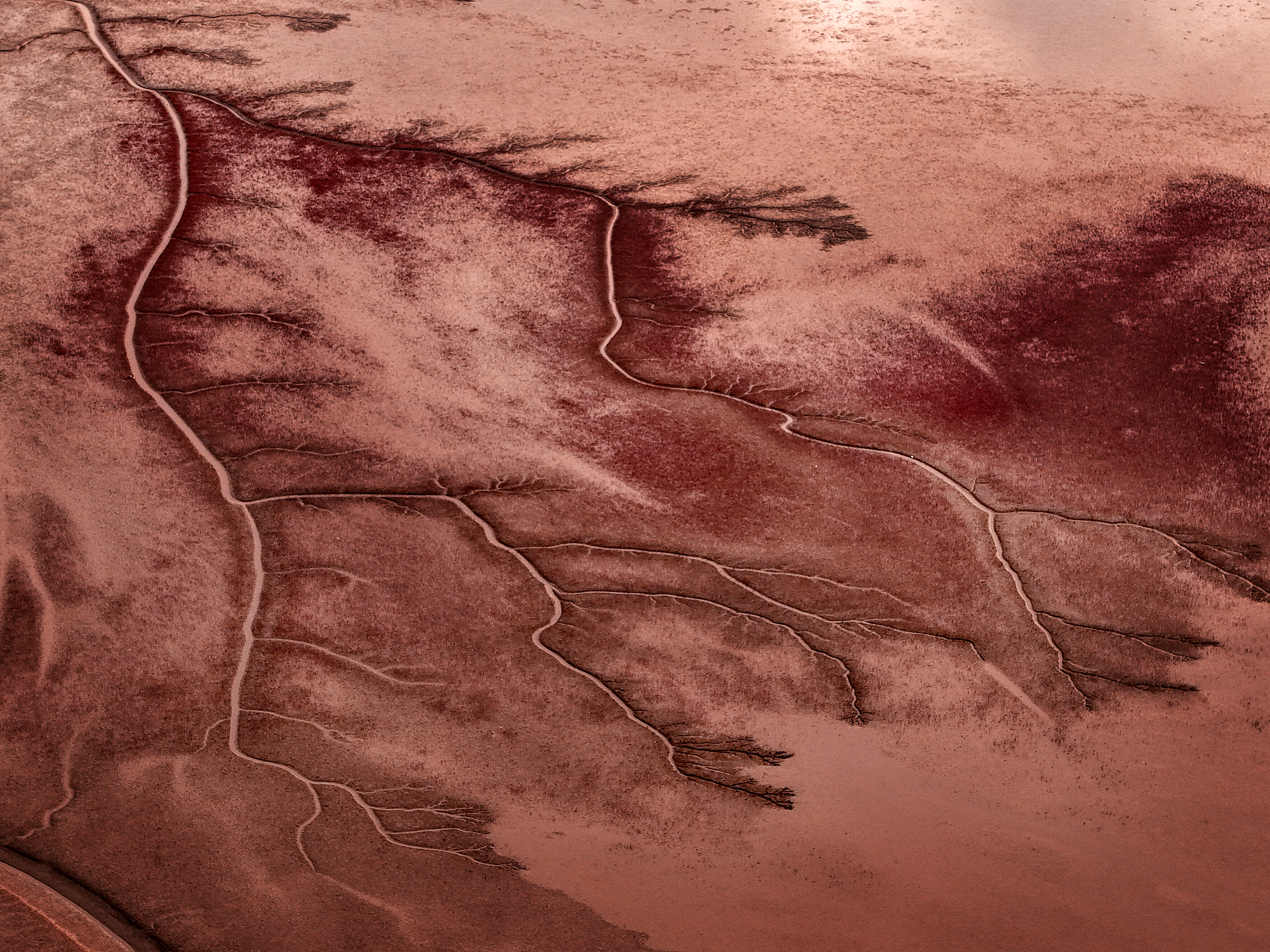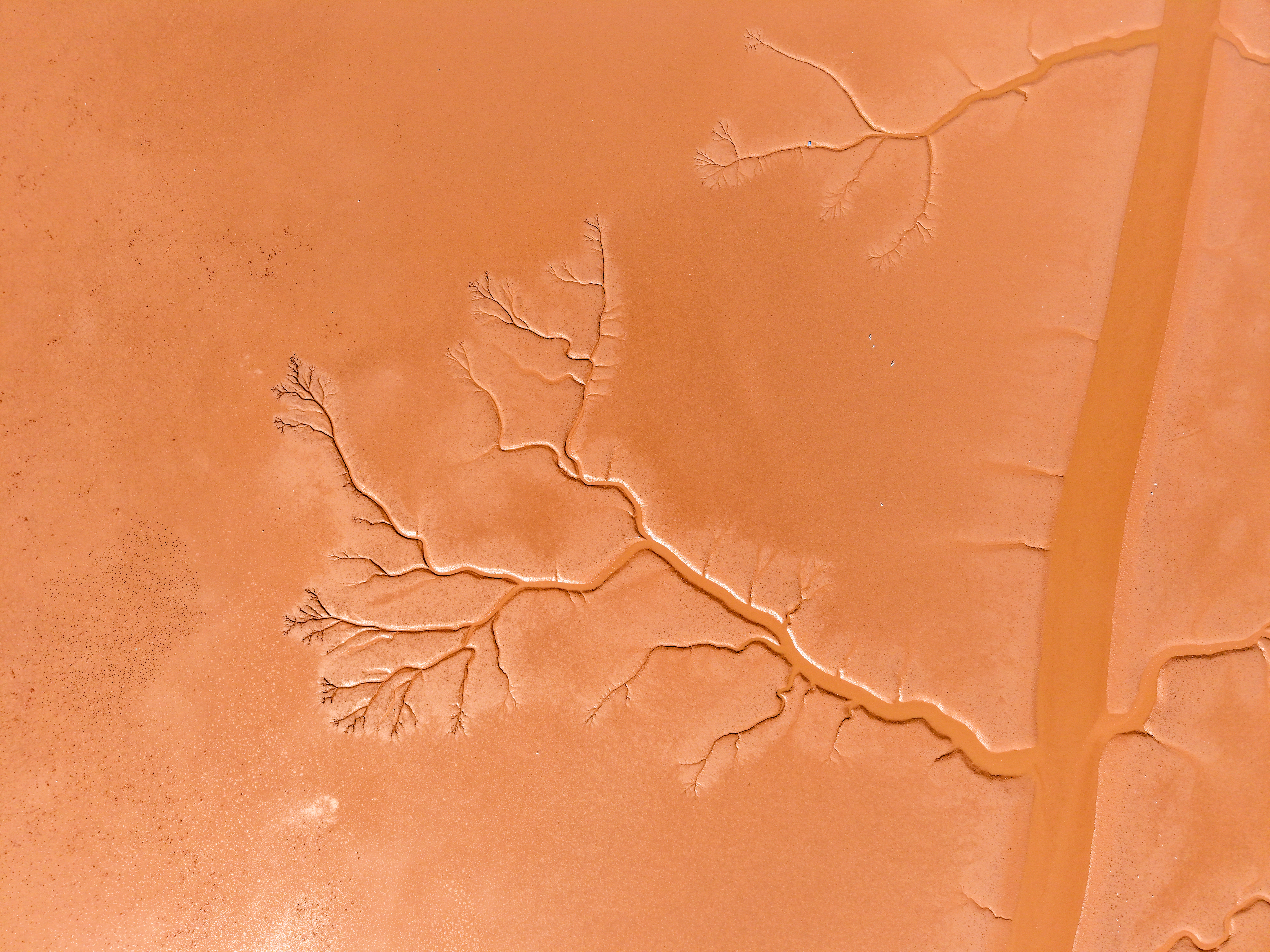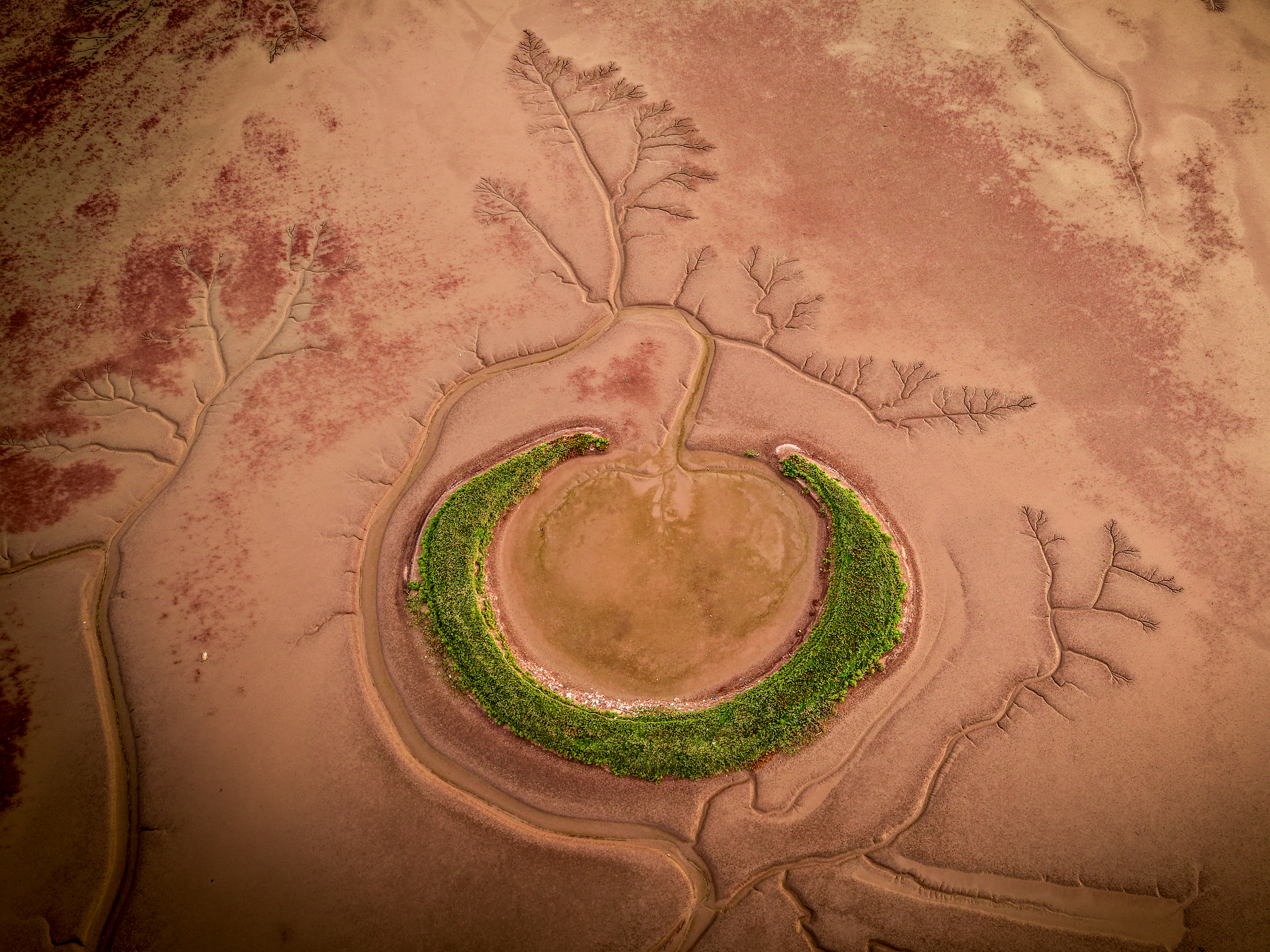 航拍中國遼寧盤錦紅海灘景區(qū)潮汐樹景色