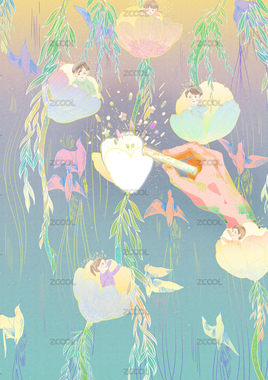 老師用粉筆為孩子們畫出花朵形容教師培育孩子的辛勤花骨朵上坐著小朋友有柳枝和飛鳥的藝術(shù)色彩視覺教師節(jié)節(jié)日插畫設(shè)計(jì)