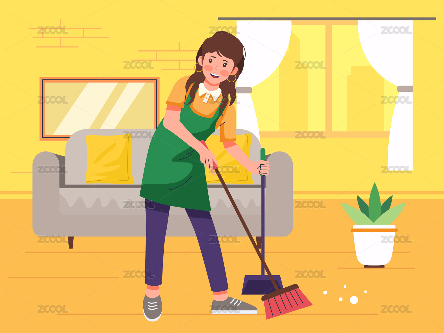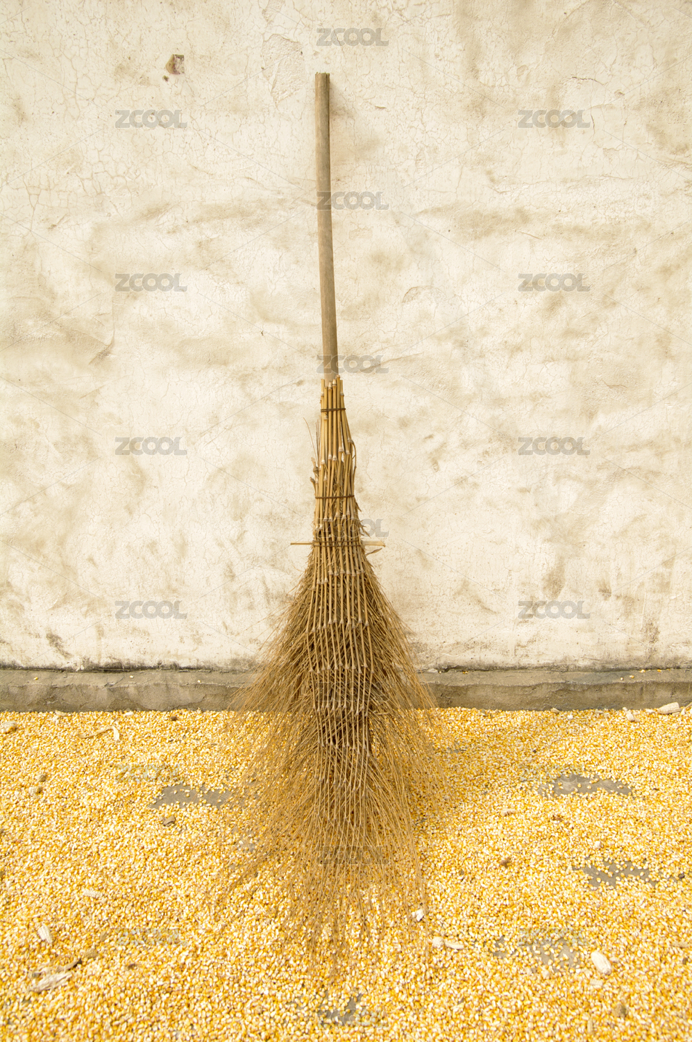 環(huán)衛(wèi)工靠在墻邊的掃帚