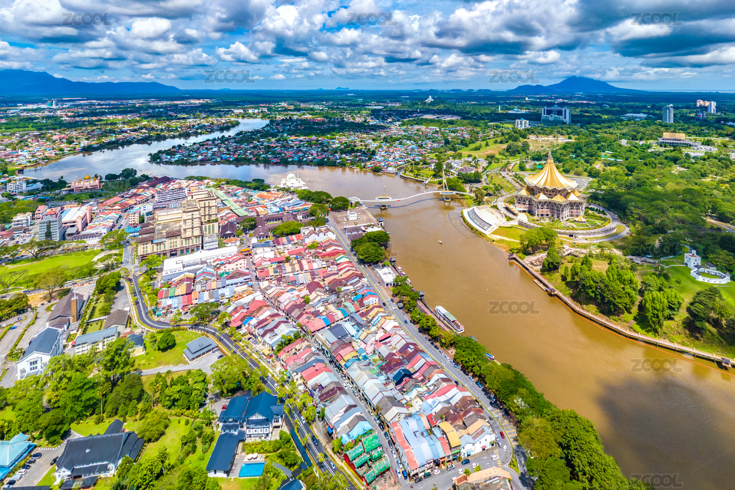 The City of Kuching Aerial View, Capital and the Most Populous City in the State of Sarawak, Malaysia, also a Tourism Destination on Borneo Island Famous for Multi-Culture and Wildlife