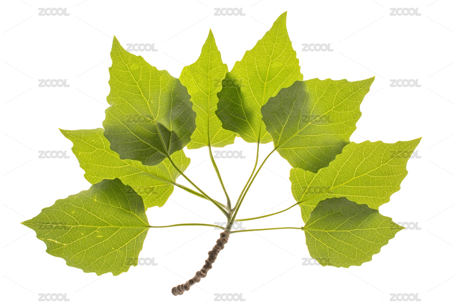 白色背景中的毛白楊的枝條(Populus tomentosa)