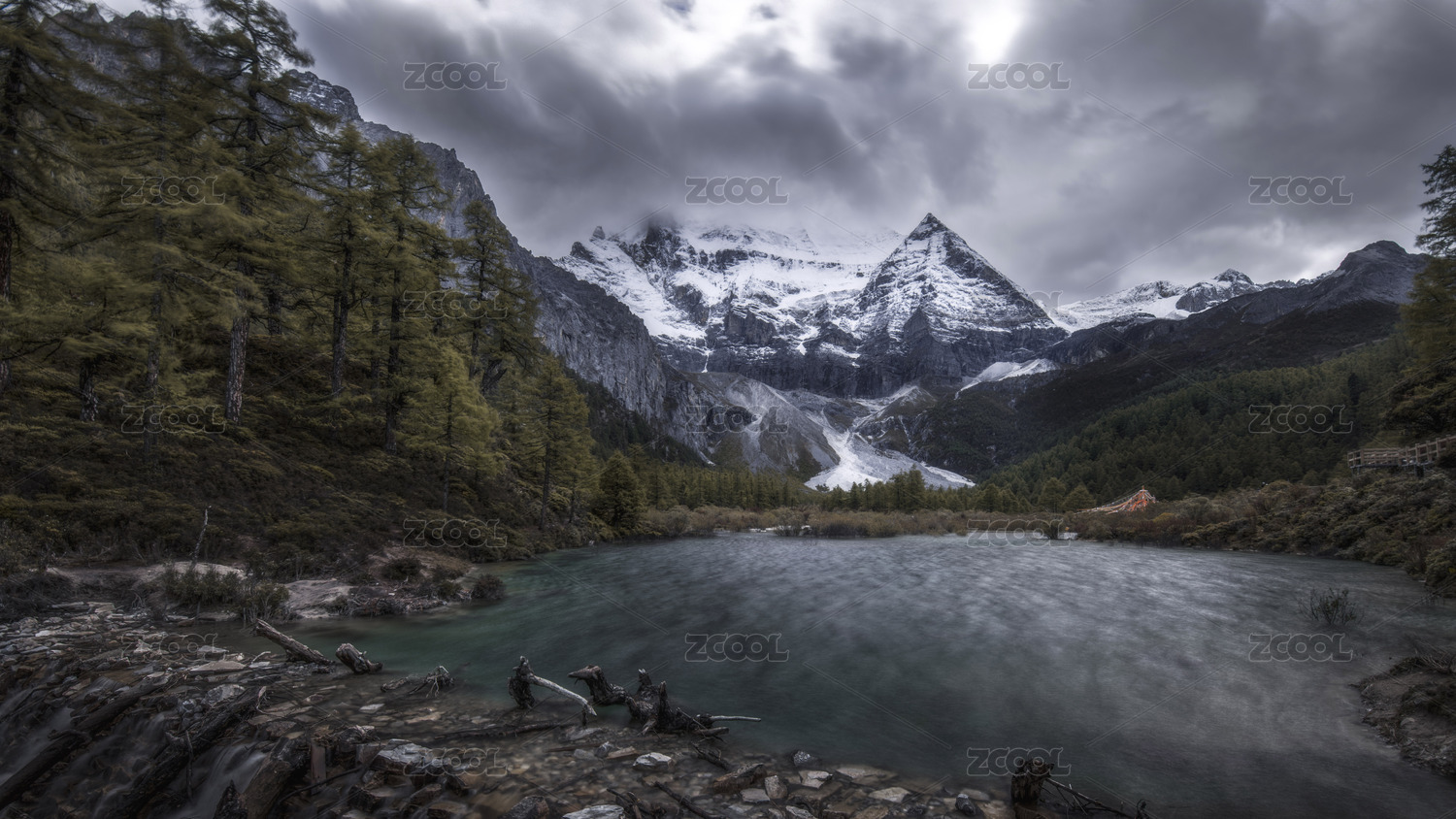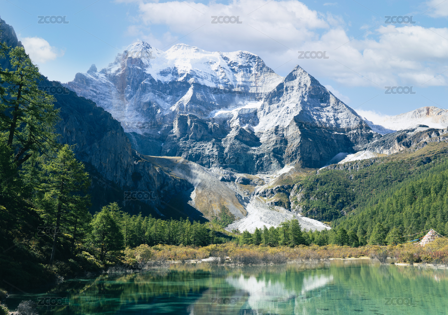 稻城亞丁仙乃日神山與五彩經(jīng)幡