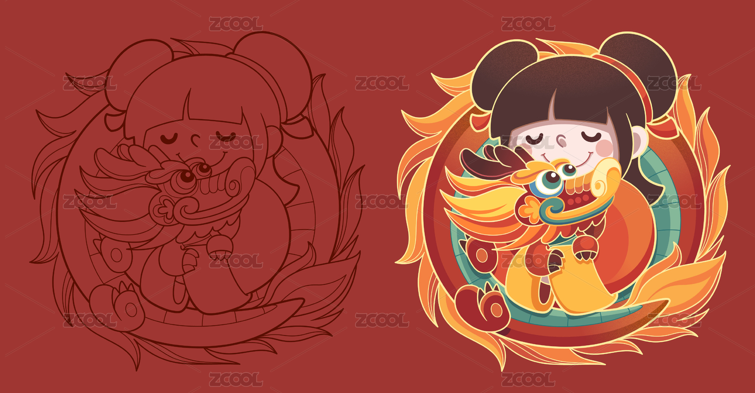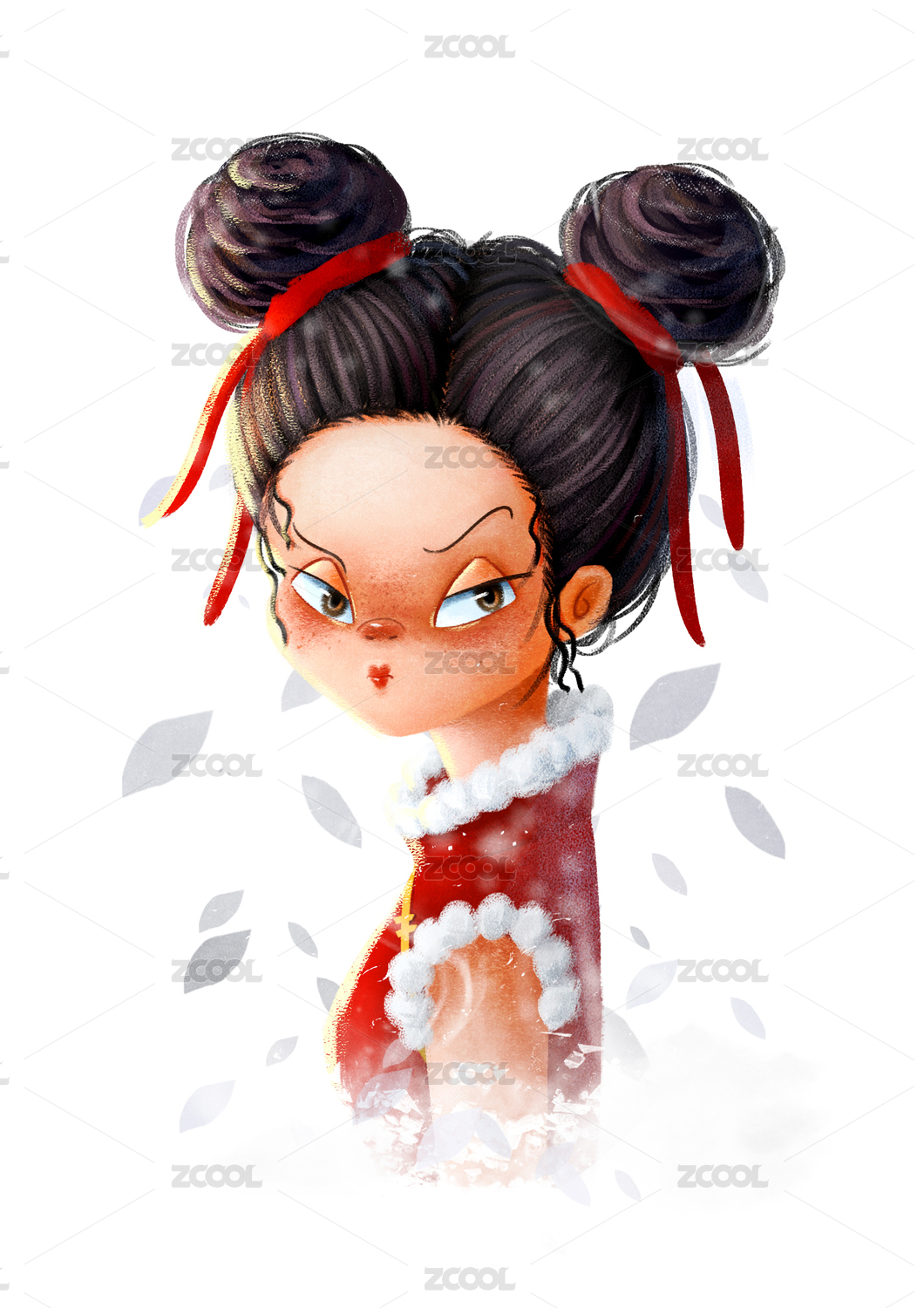 中國(guó)娃娃可愛人物品牌設(shè)計(jì)插畫