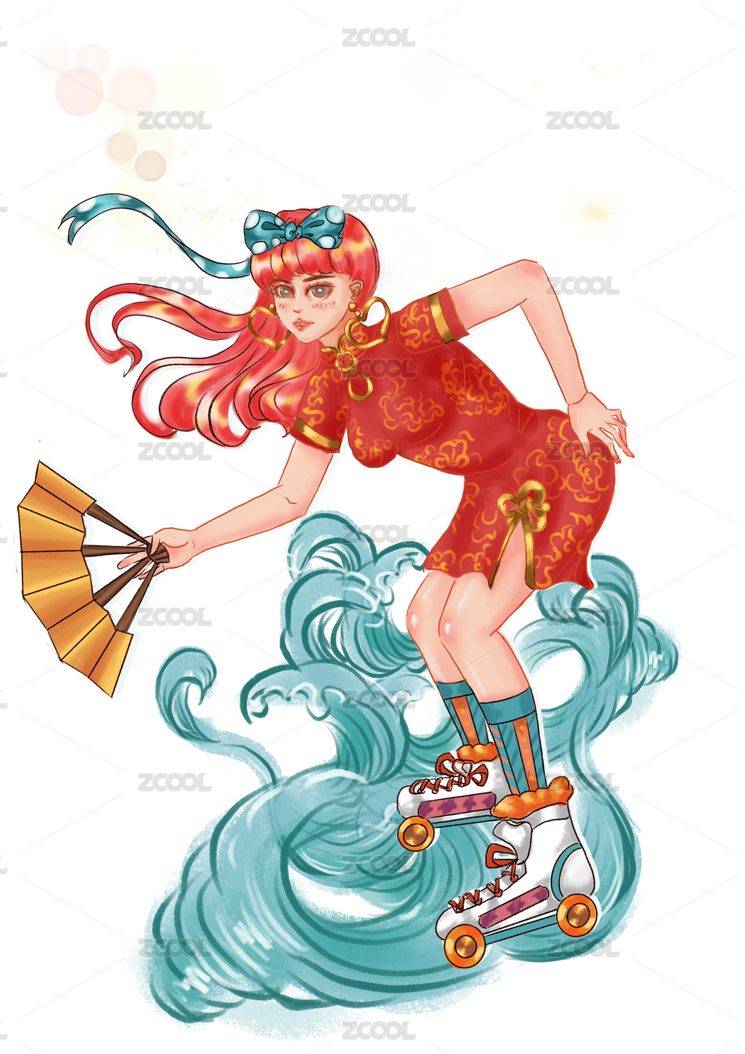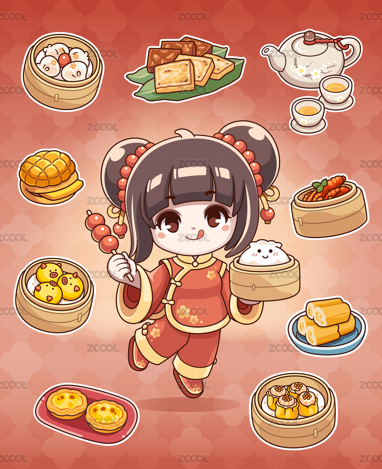 中國(guó)風(fēng)國(guó)潮女孩餐飲插畫元素