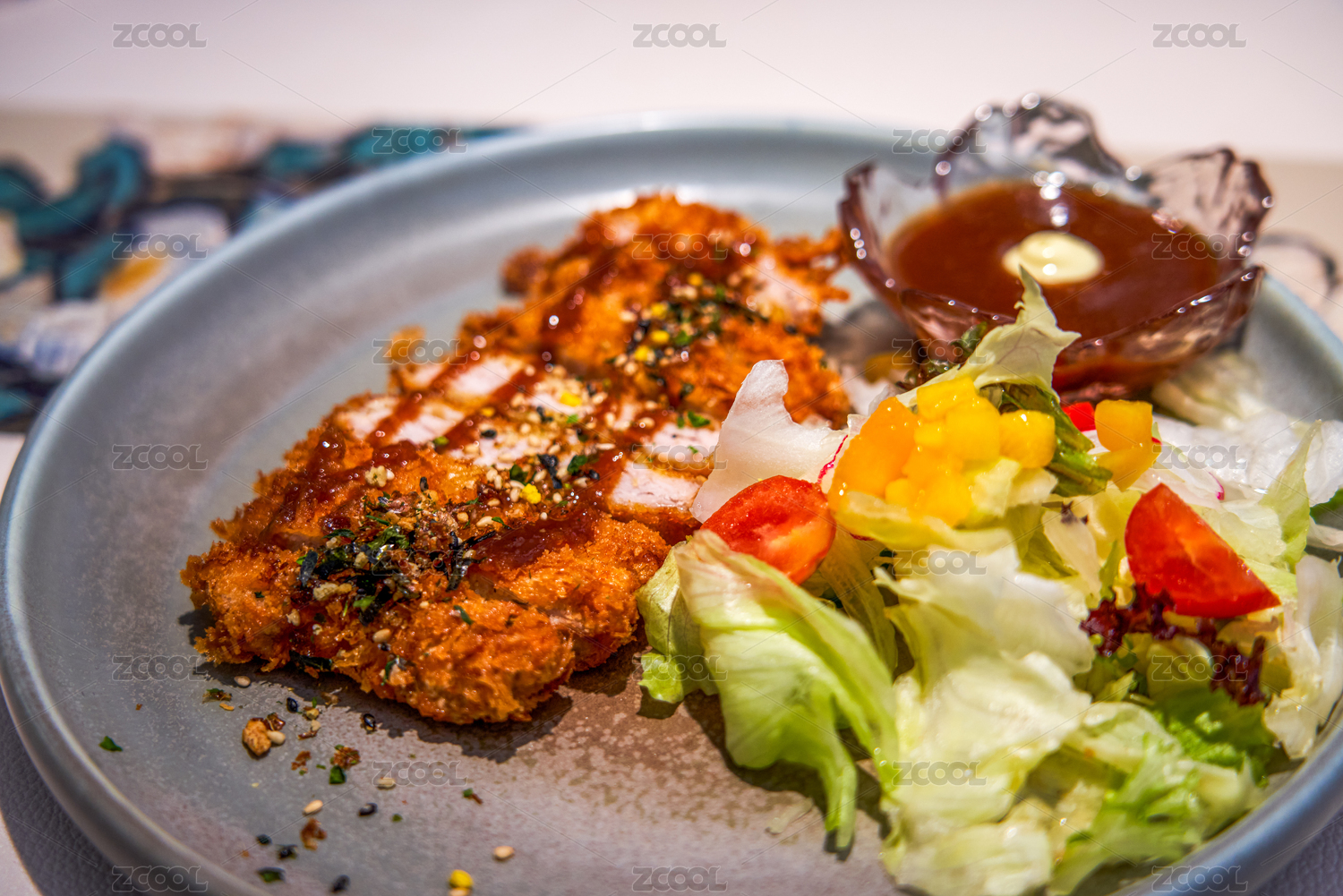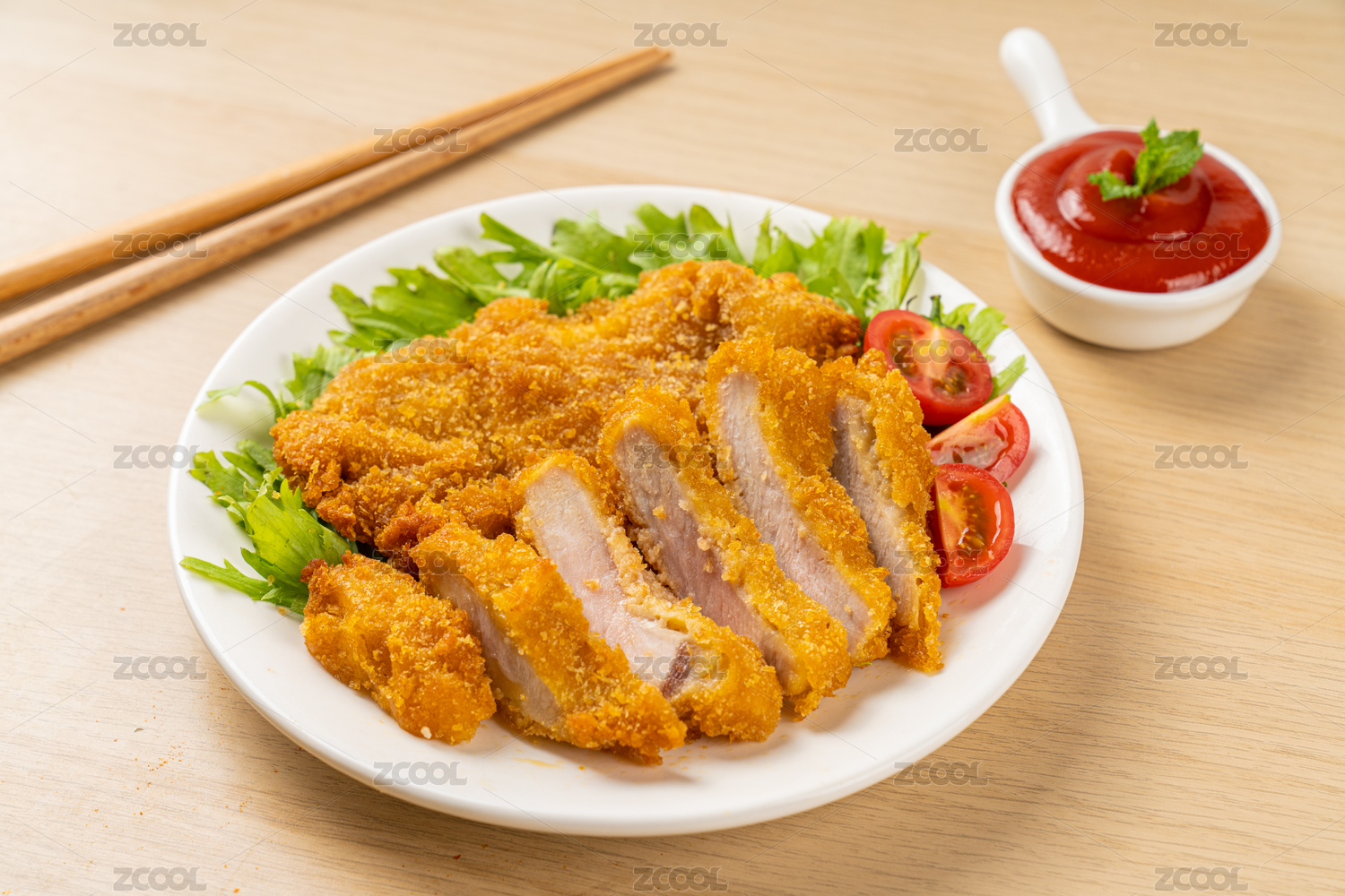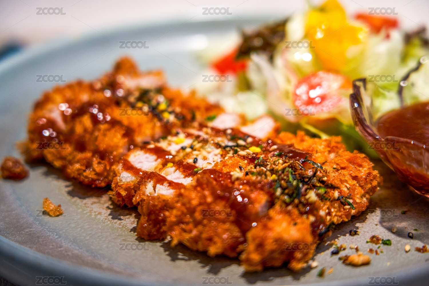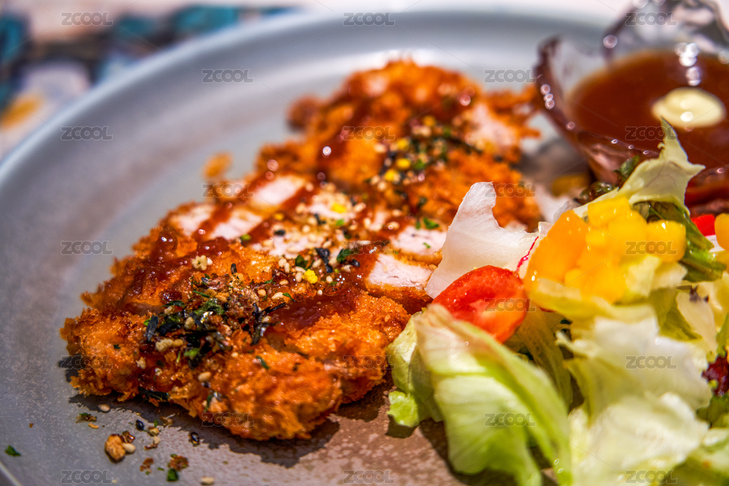 精致的沙拉醬炸豬排