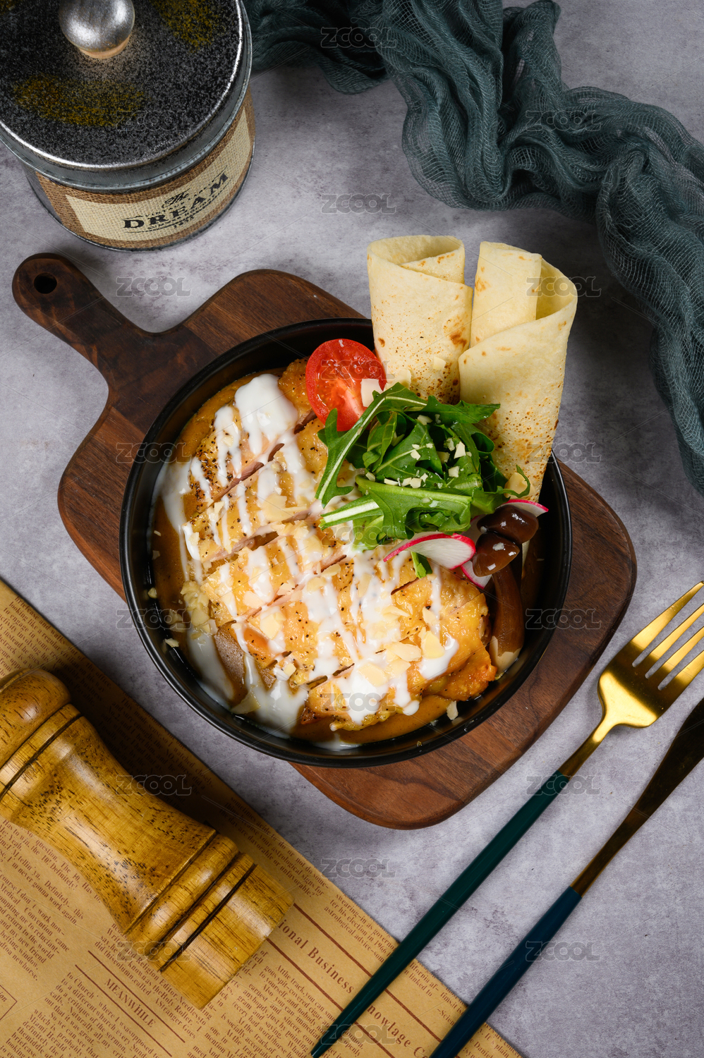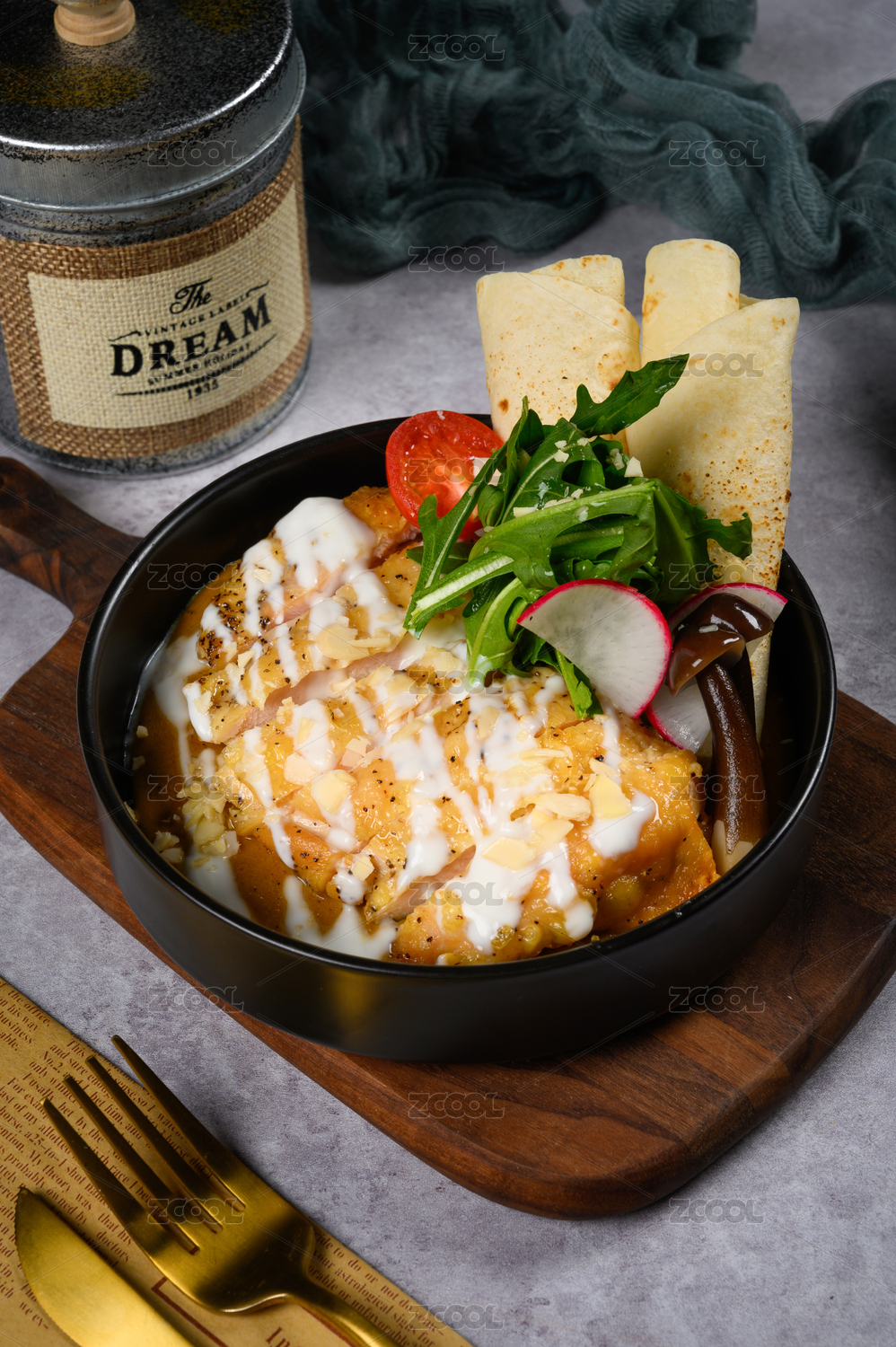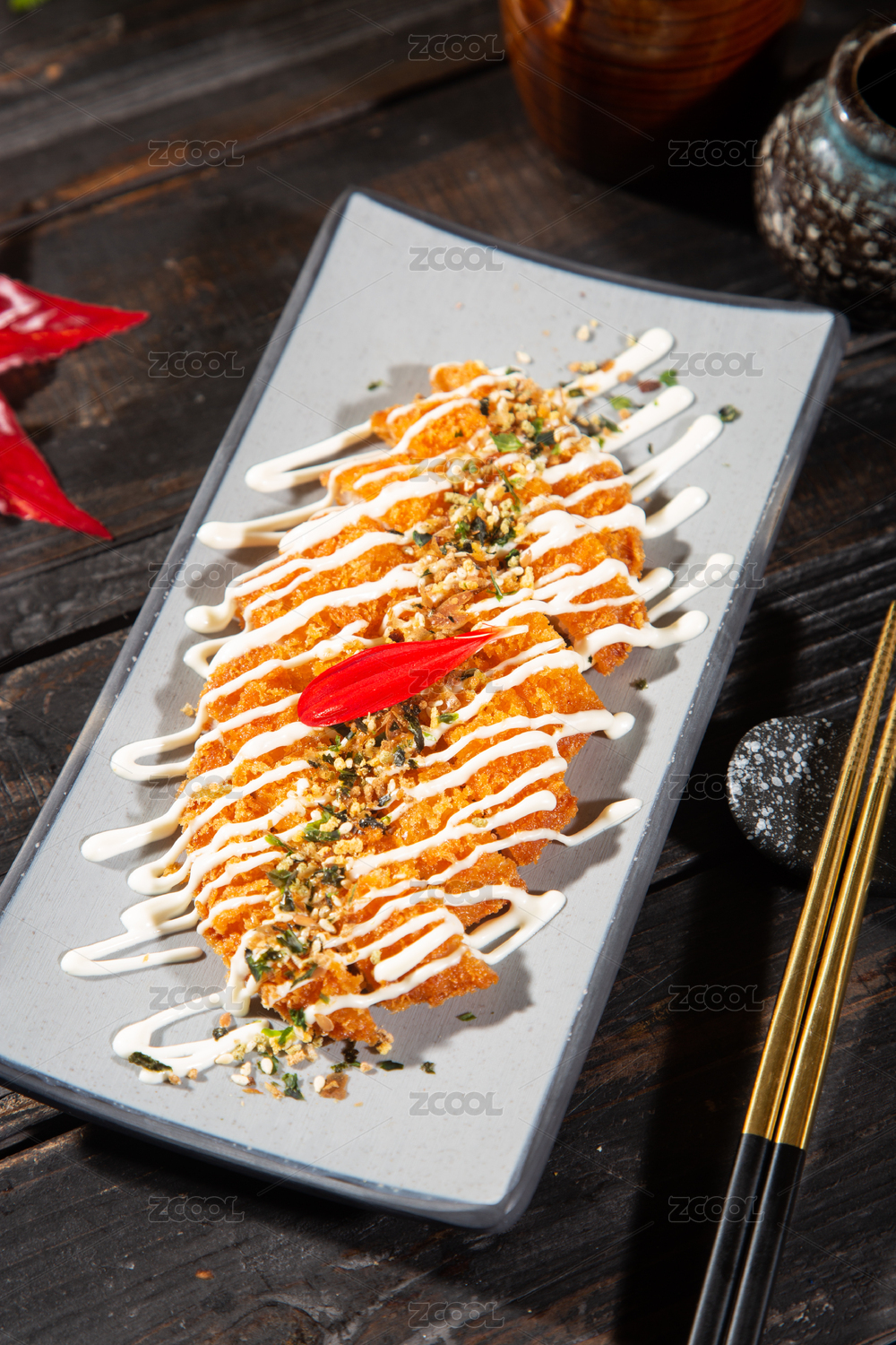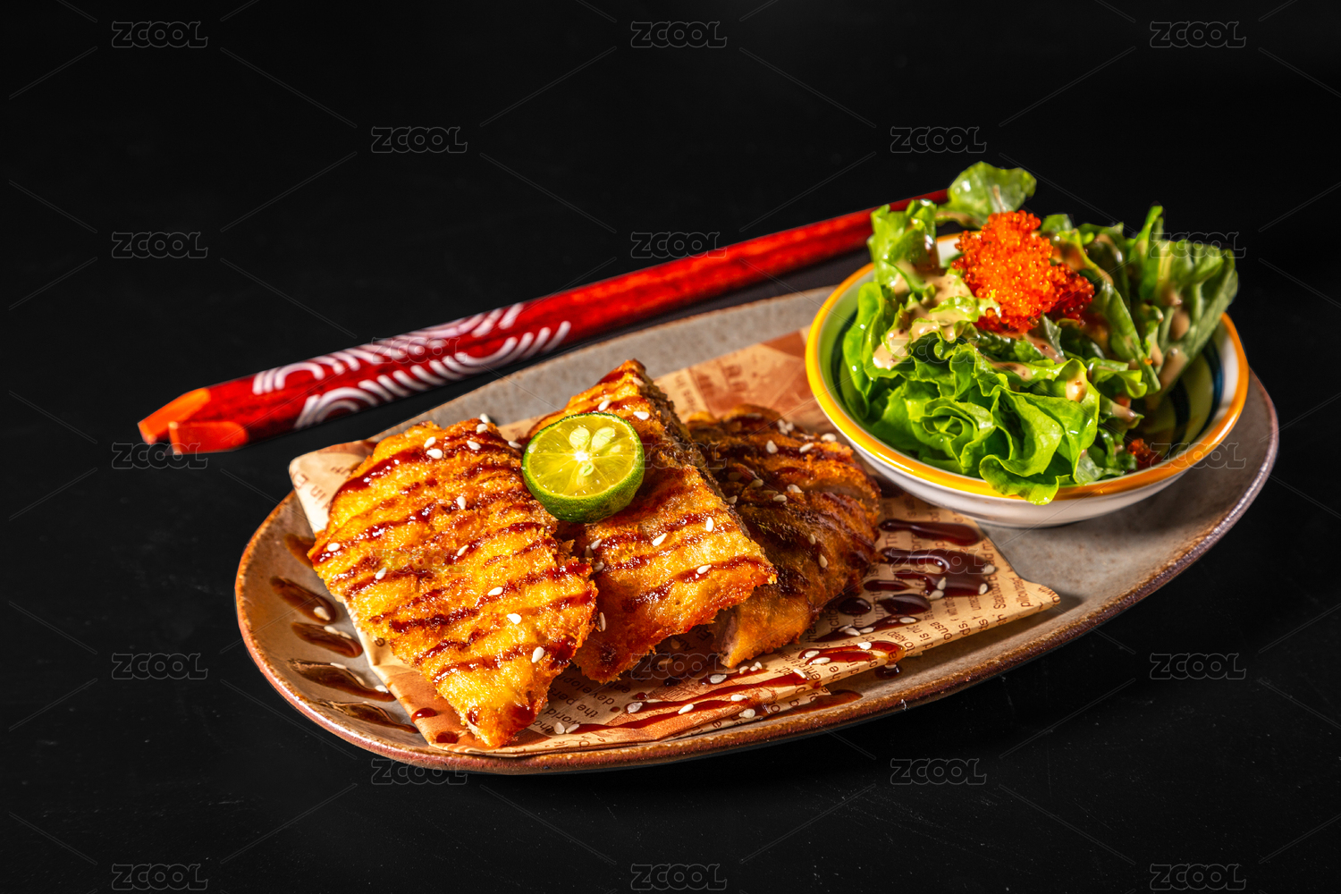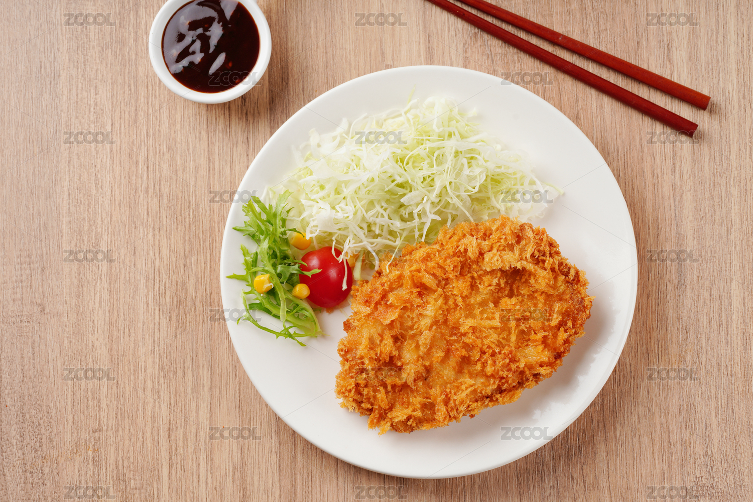 精致的沙拉醬炸豬排