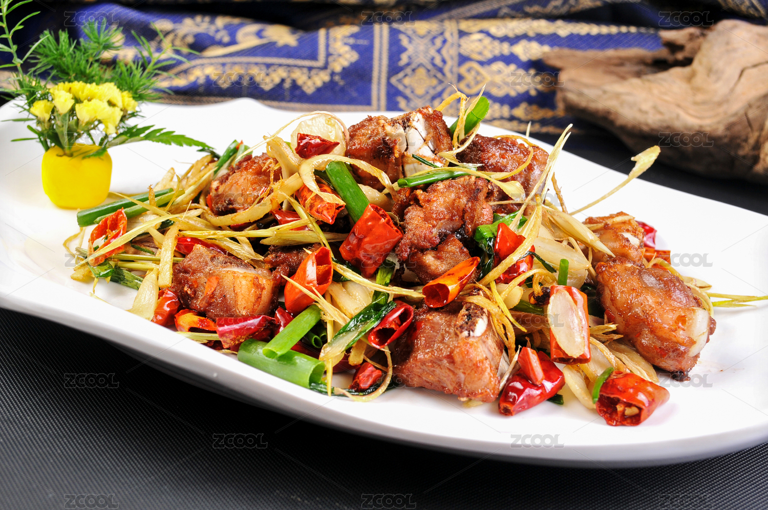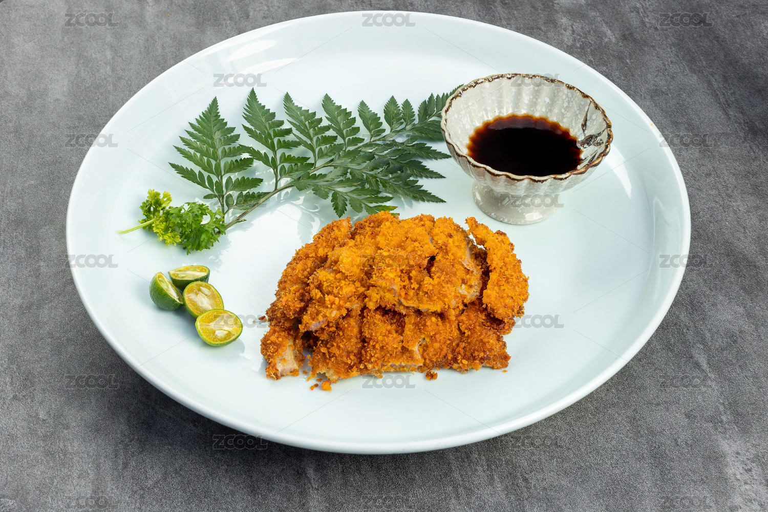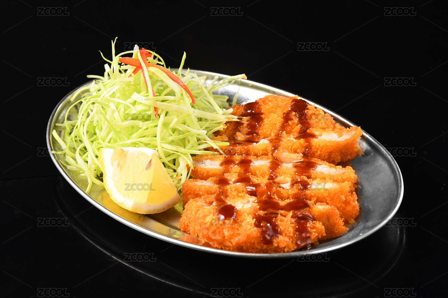 黑色桌面上有一份炸豬排