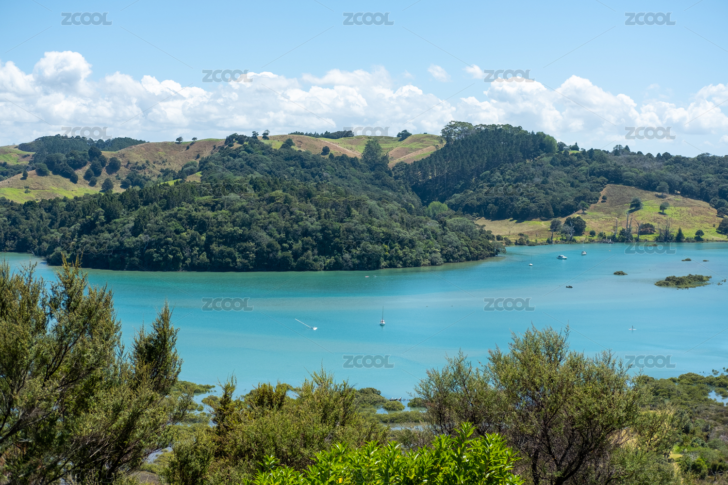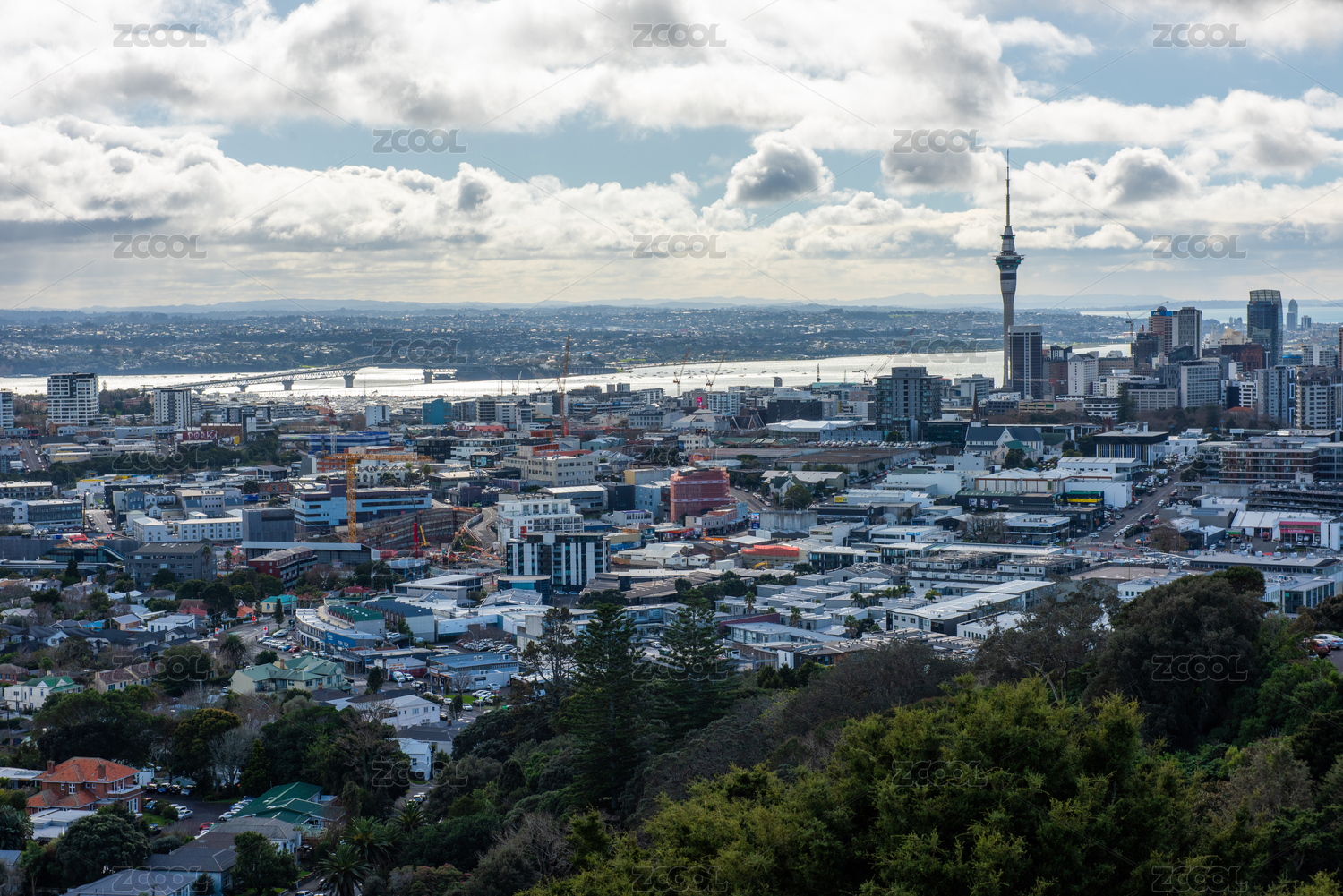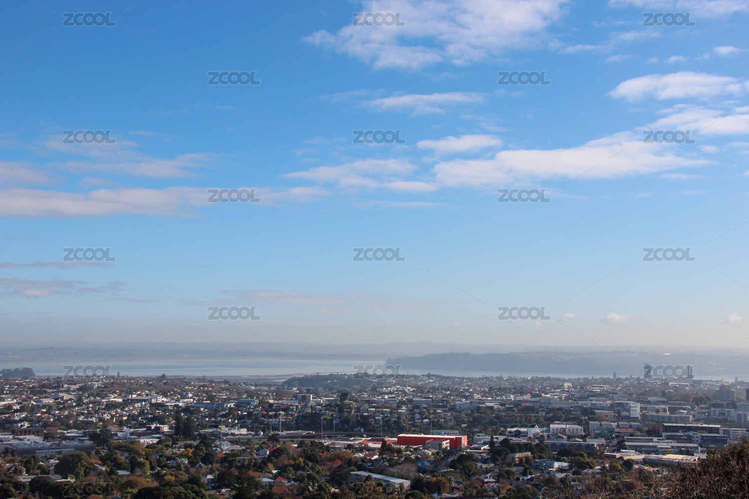 藍天白云之下從伊甸山遠看奧克蘭市區(qū)