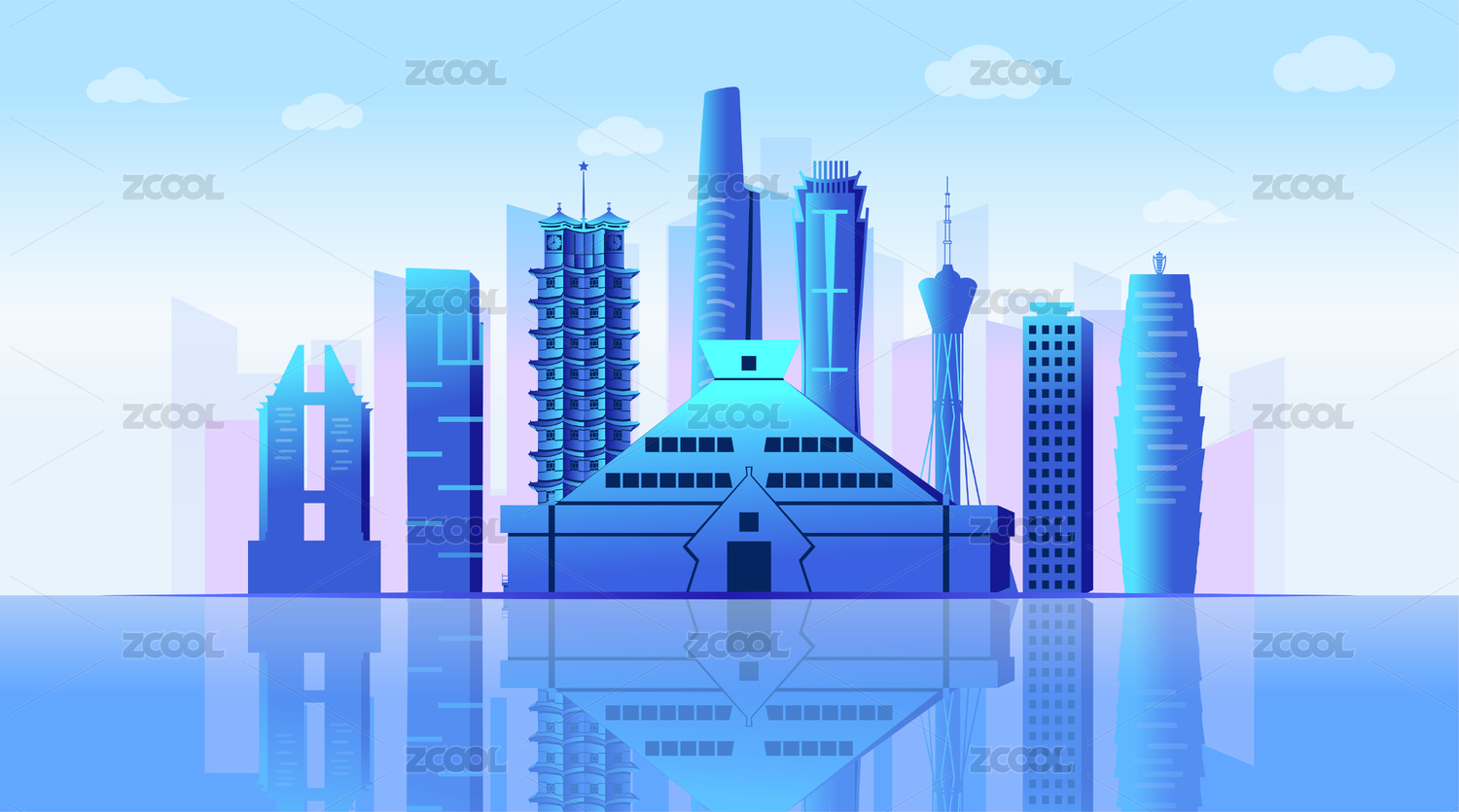 中國(guó)河南鄭州市商務(wù)科技城市彩色插畫
