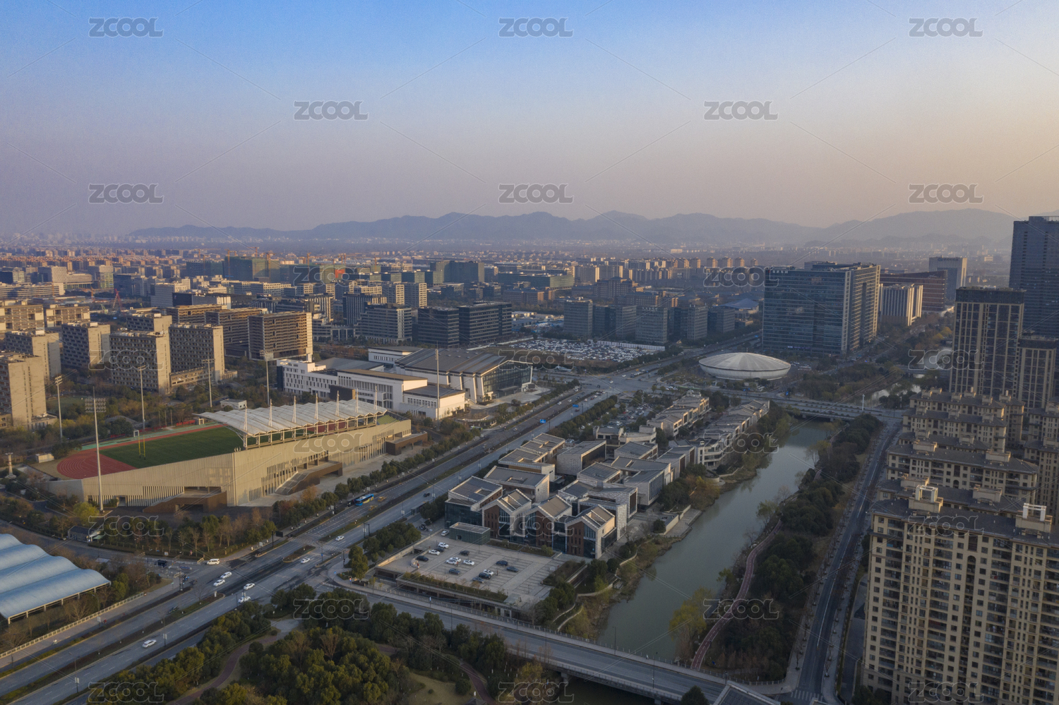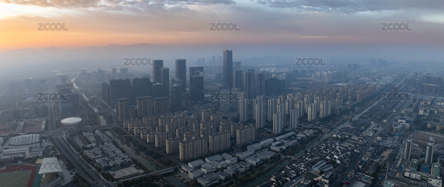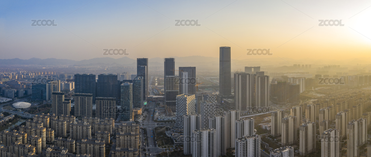 杭州余杭科技城晨曦日出航拍