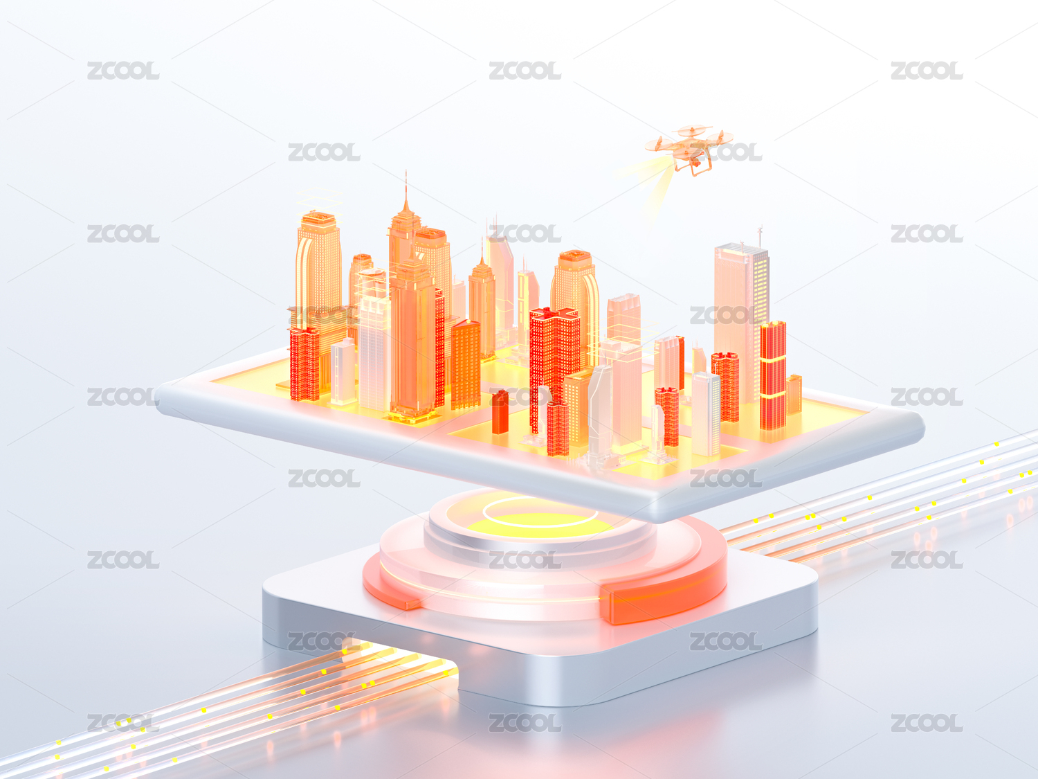 橙色科技城市建筑概念智能淺色科技感場(chǎng)景
