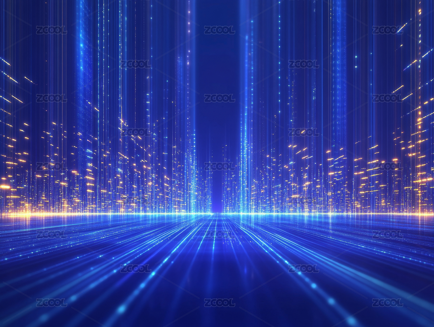 藍(lán)色向上透視延伸的光束科技城市背景海報(bào)