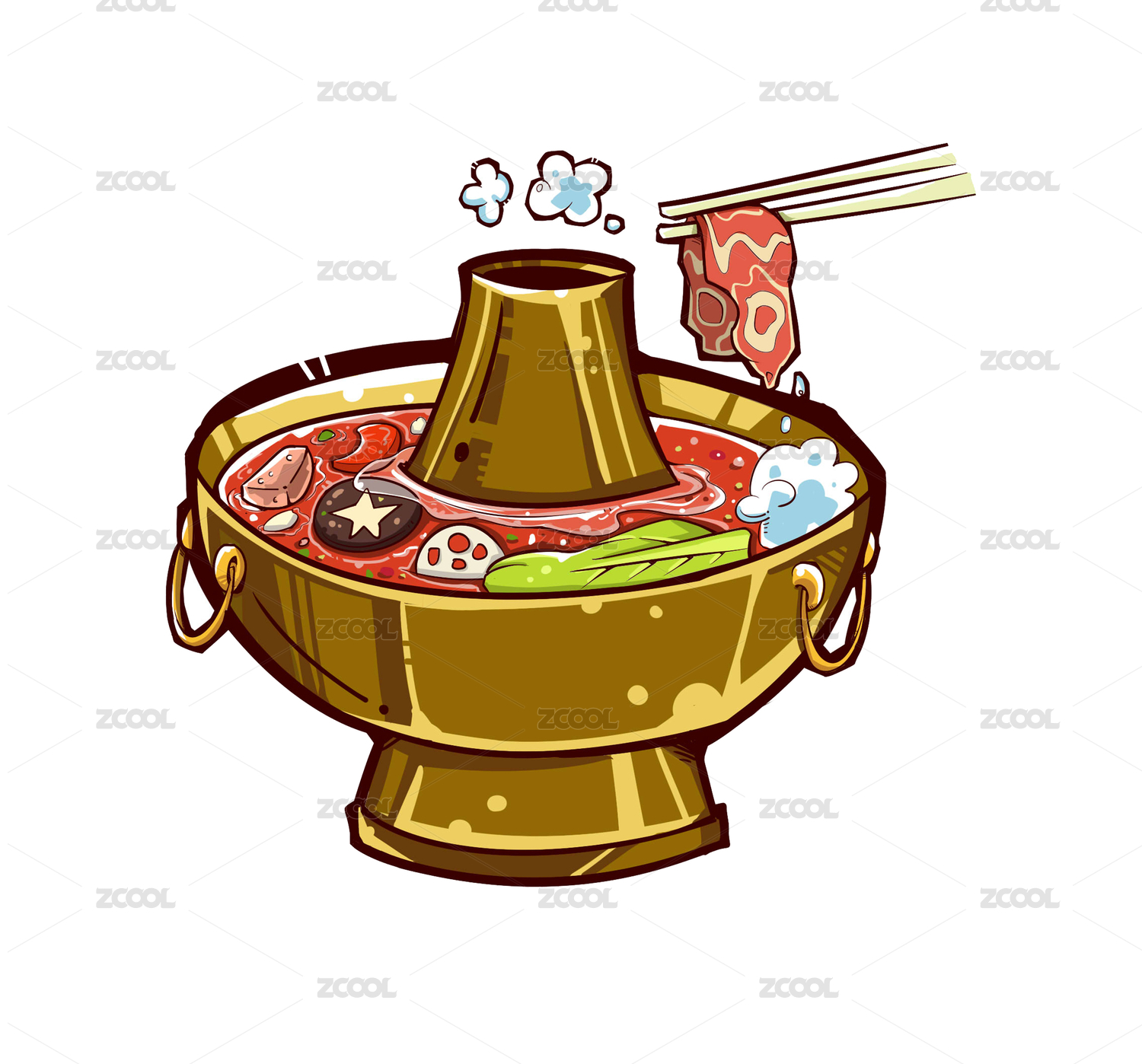 國(guó)潮成都地標(biāo)建筑美食火鍋插畫4