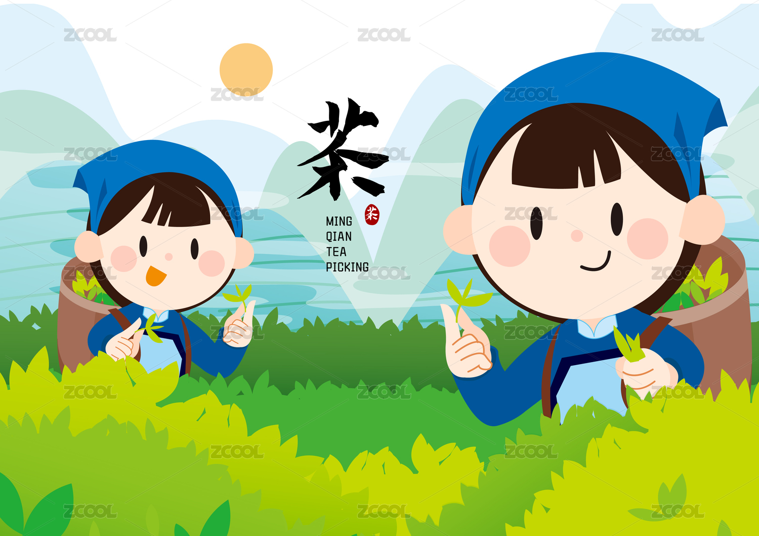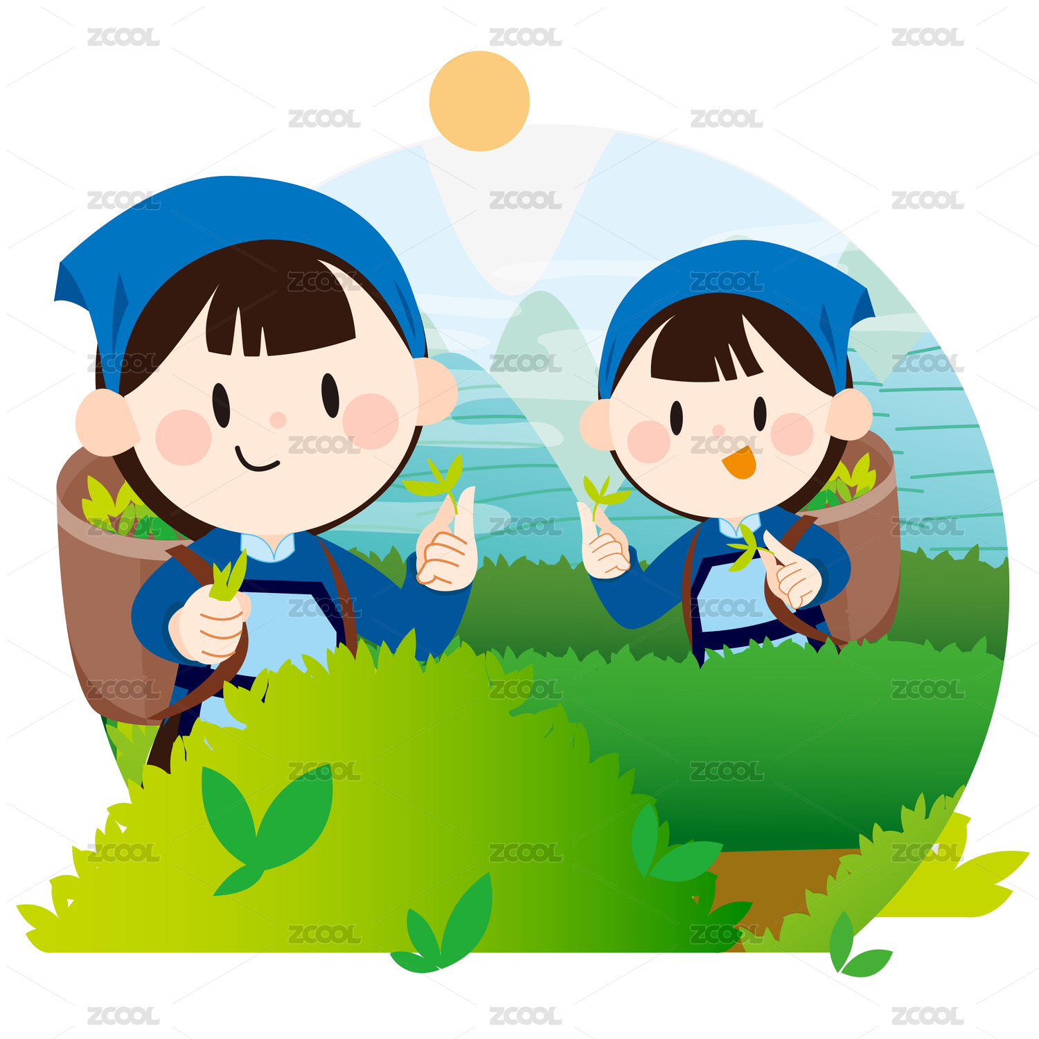 可愛采茶姑娘采茶山水民族服裝采茶女矢量