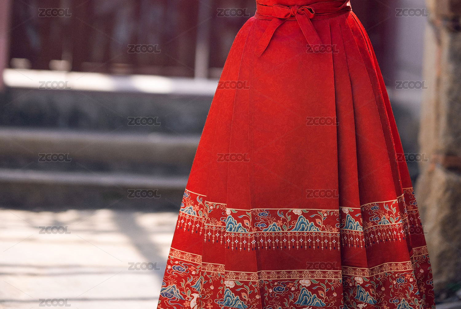 大紅色馬面裙中國傳統(tǒng)服飾民族服裝特寫