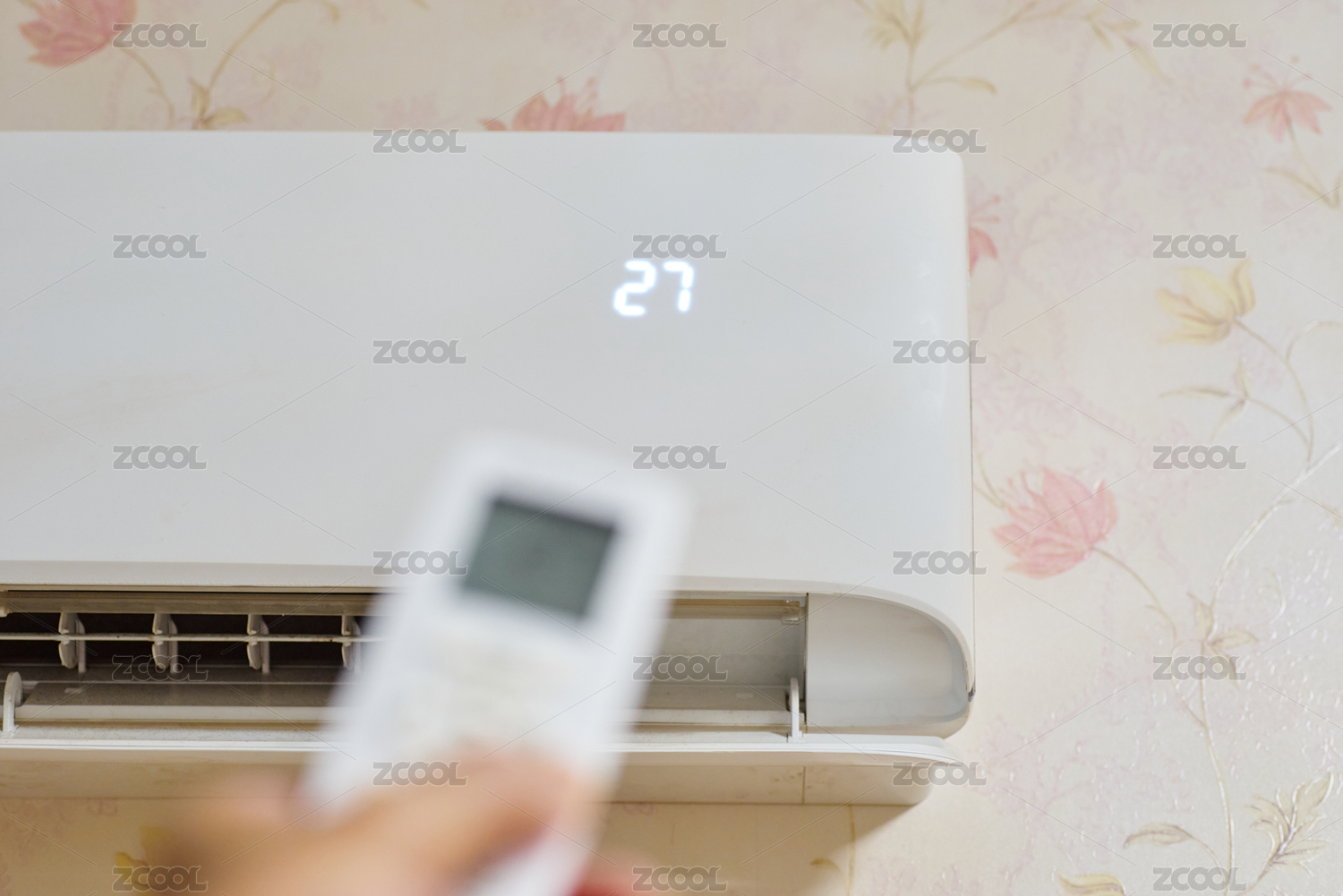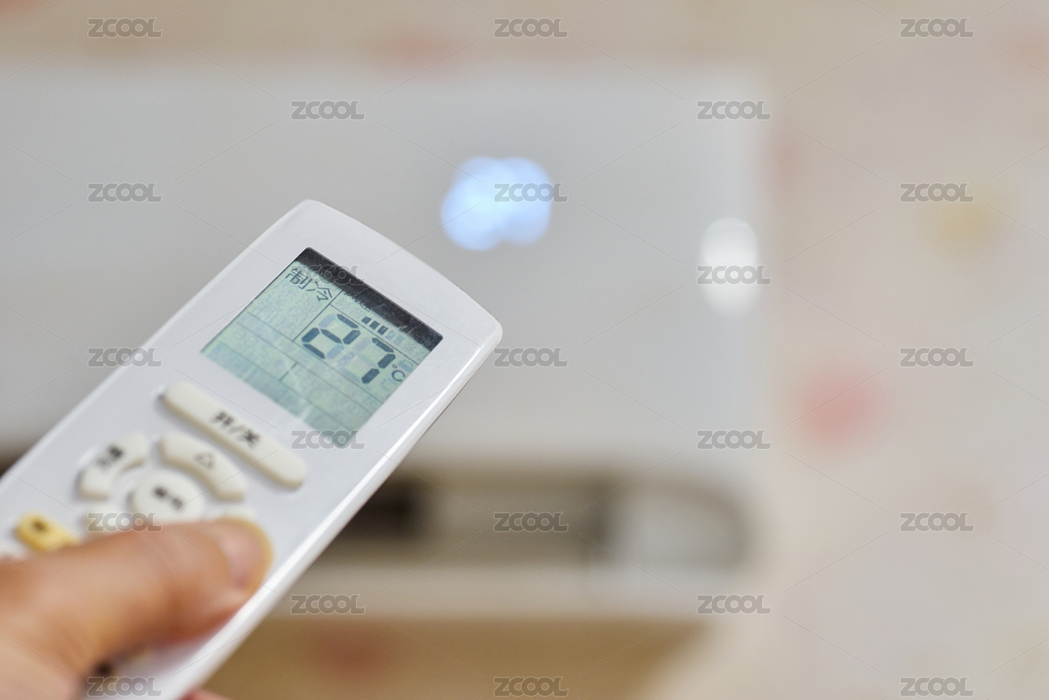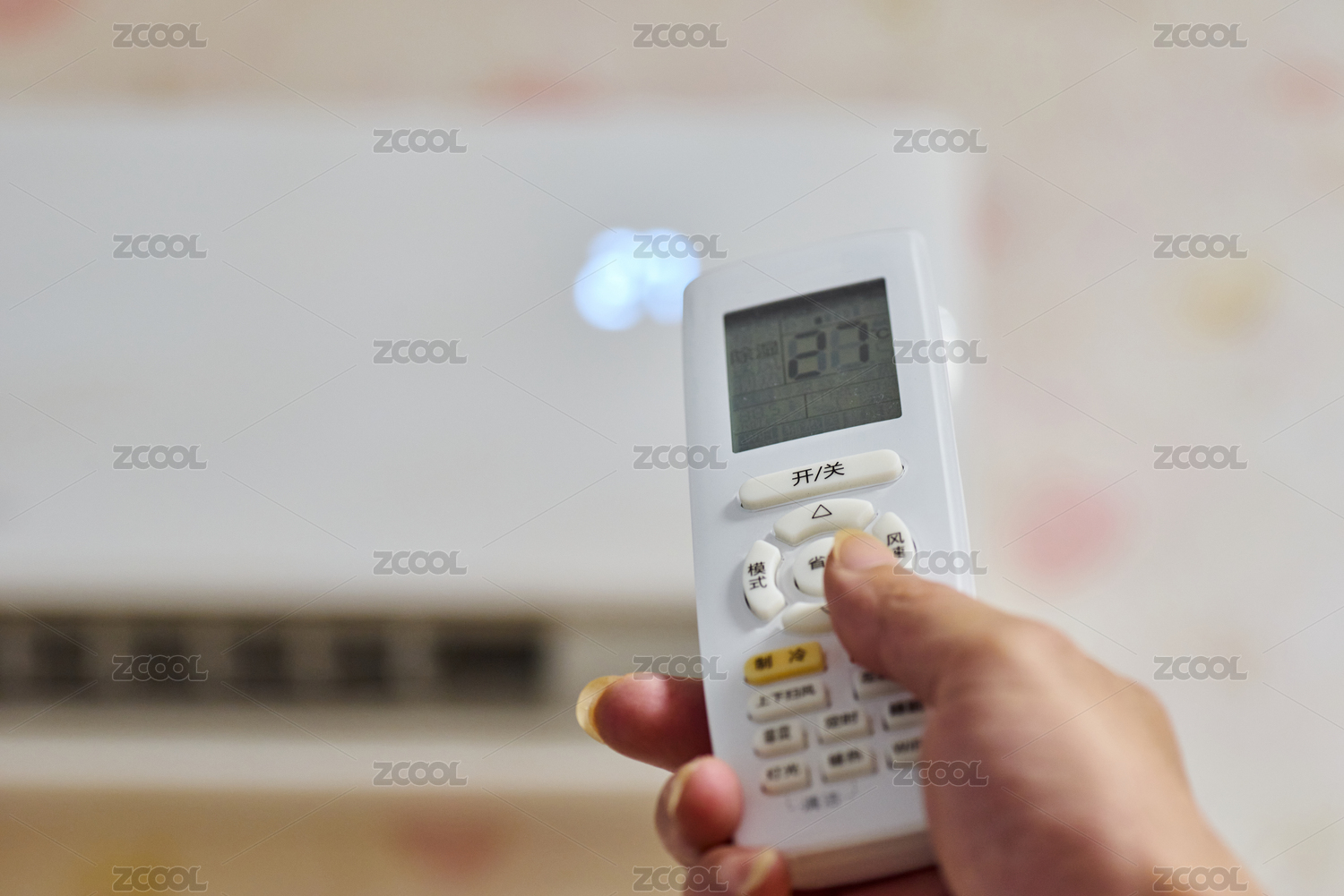 手持遙控器對(duì)著壁掛空調(diào)設(shè)定溫度