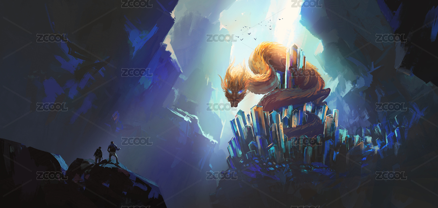 神話(huà)背景下龍穴場(chǎng)景設(shè)定,數(shù)碼繪畫(huà)
