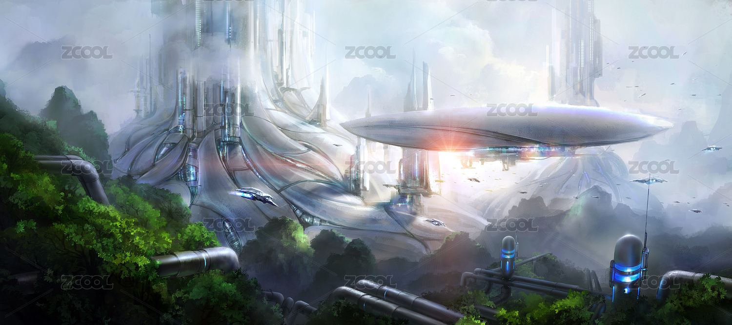 外星球著落地球的電影場(chǎng)景設(shè)定,數(shù)字繪畫(huà)