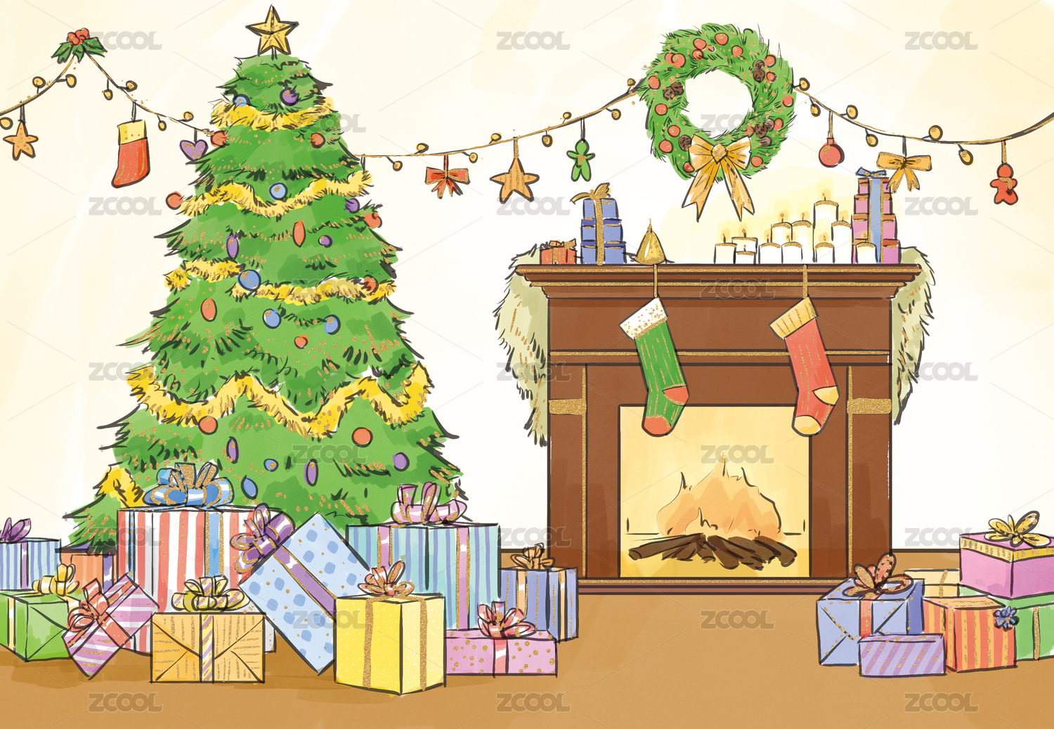 室內(nèi)慶祝圣誕火爐禮物溫暖舒適