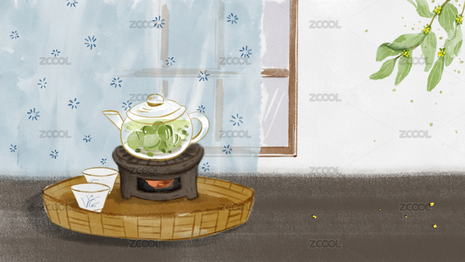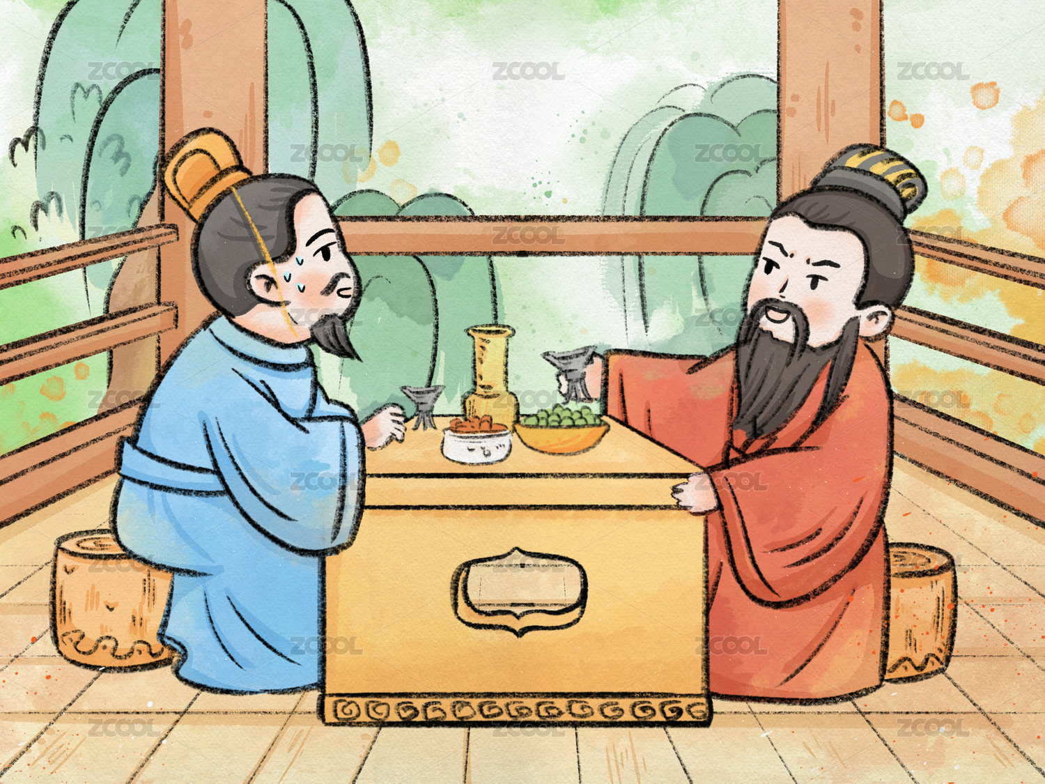 中國風(fēng)水墨插畫兔子青梅煮酒