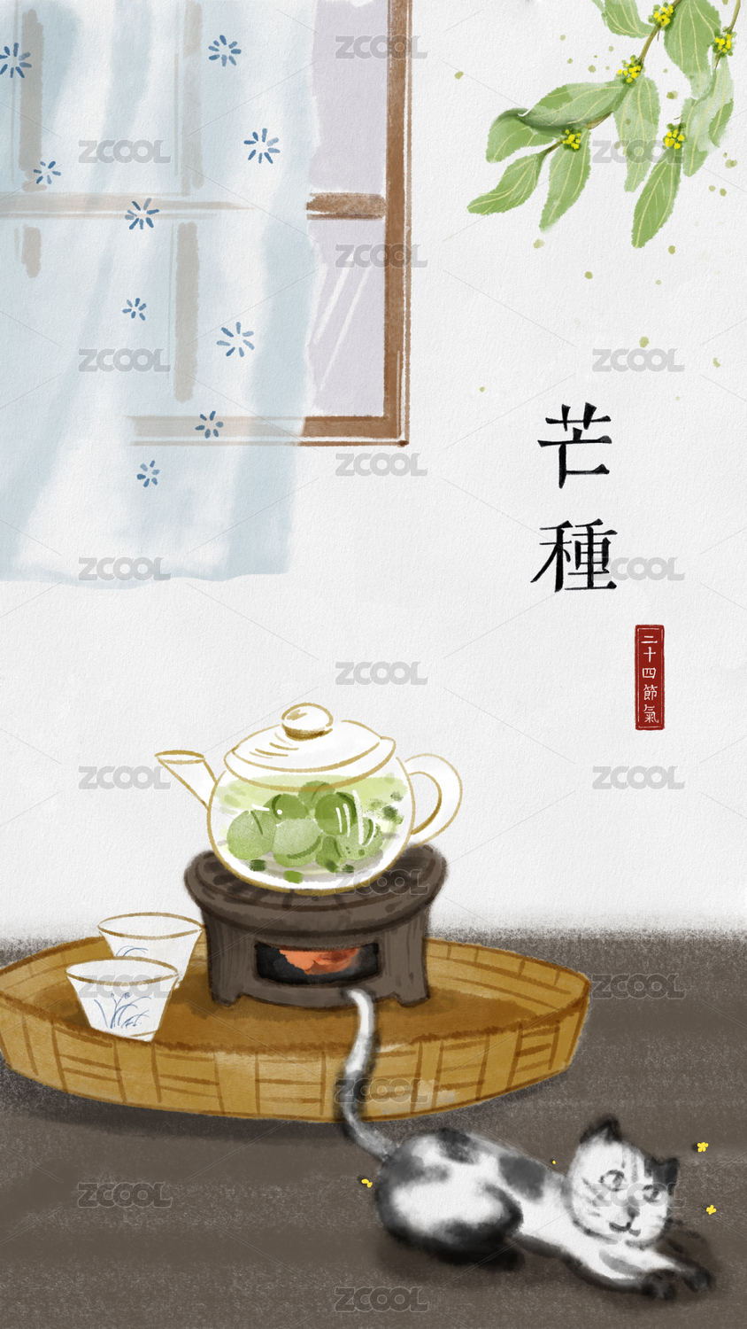二十四節(jié)氣芒種青梅煮酒小貓咪