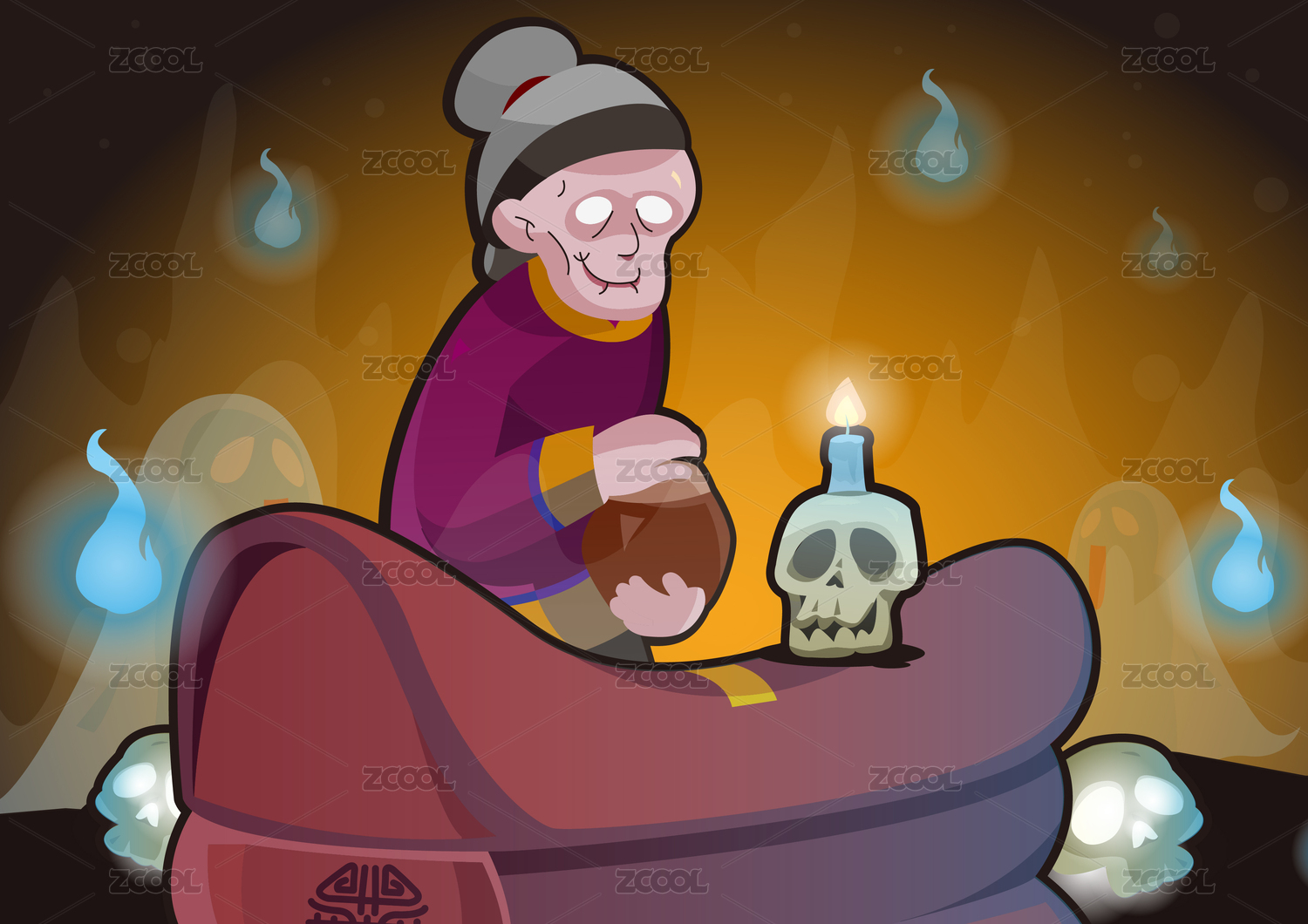 七月半中元節(jié)中國風可愛矢量詭異龍婆鬼節(jié)