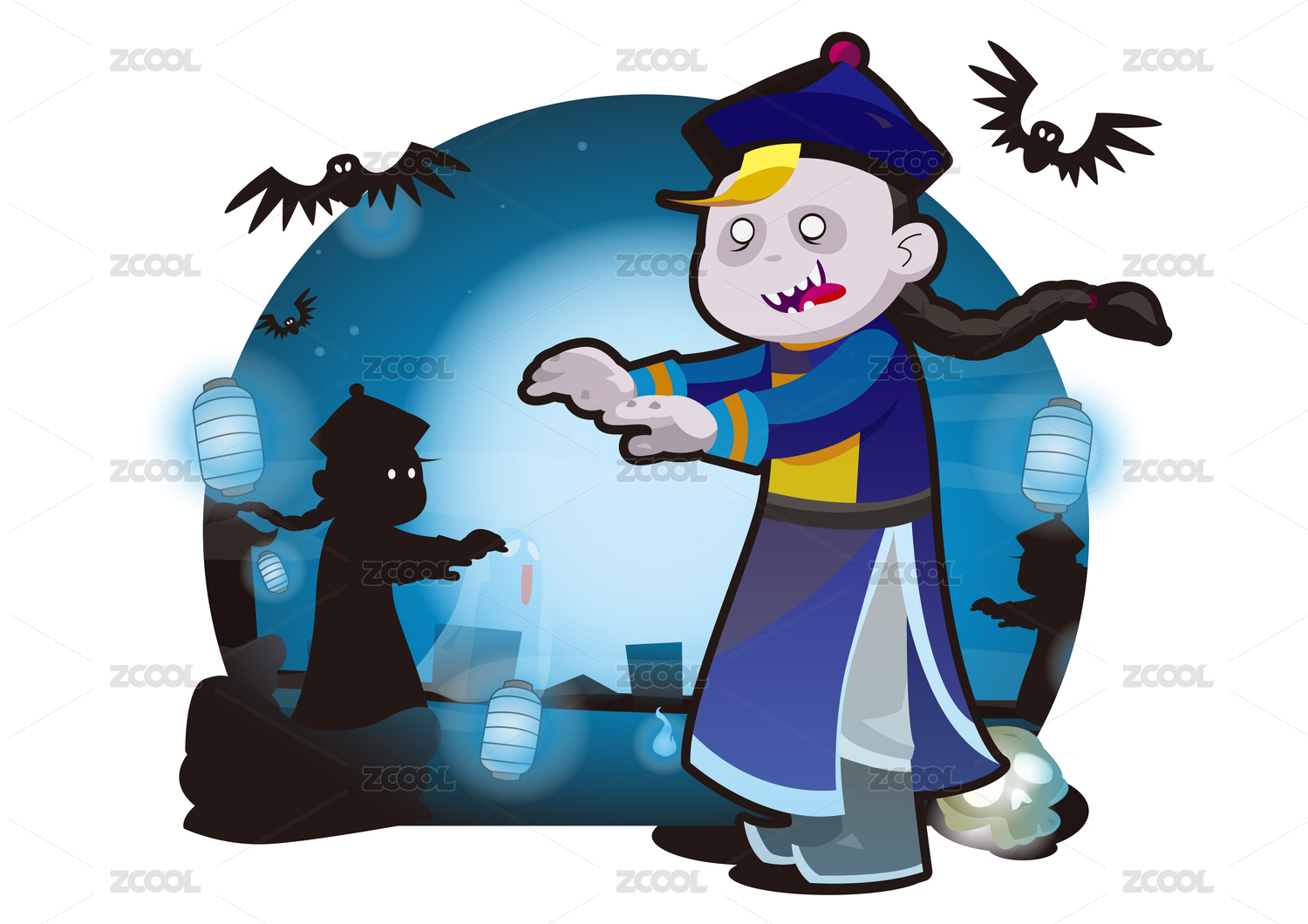 恐怖中元節(jié)中國風可愛矢量僵尸復(fù)活鬼節(jié)