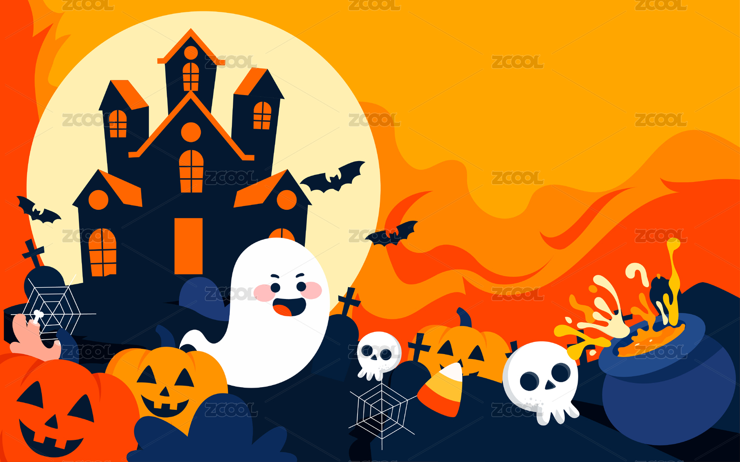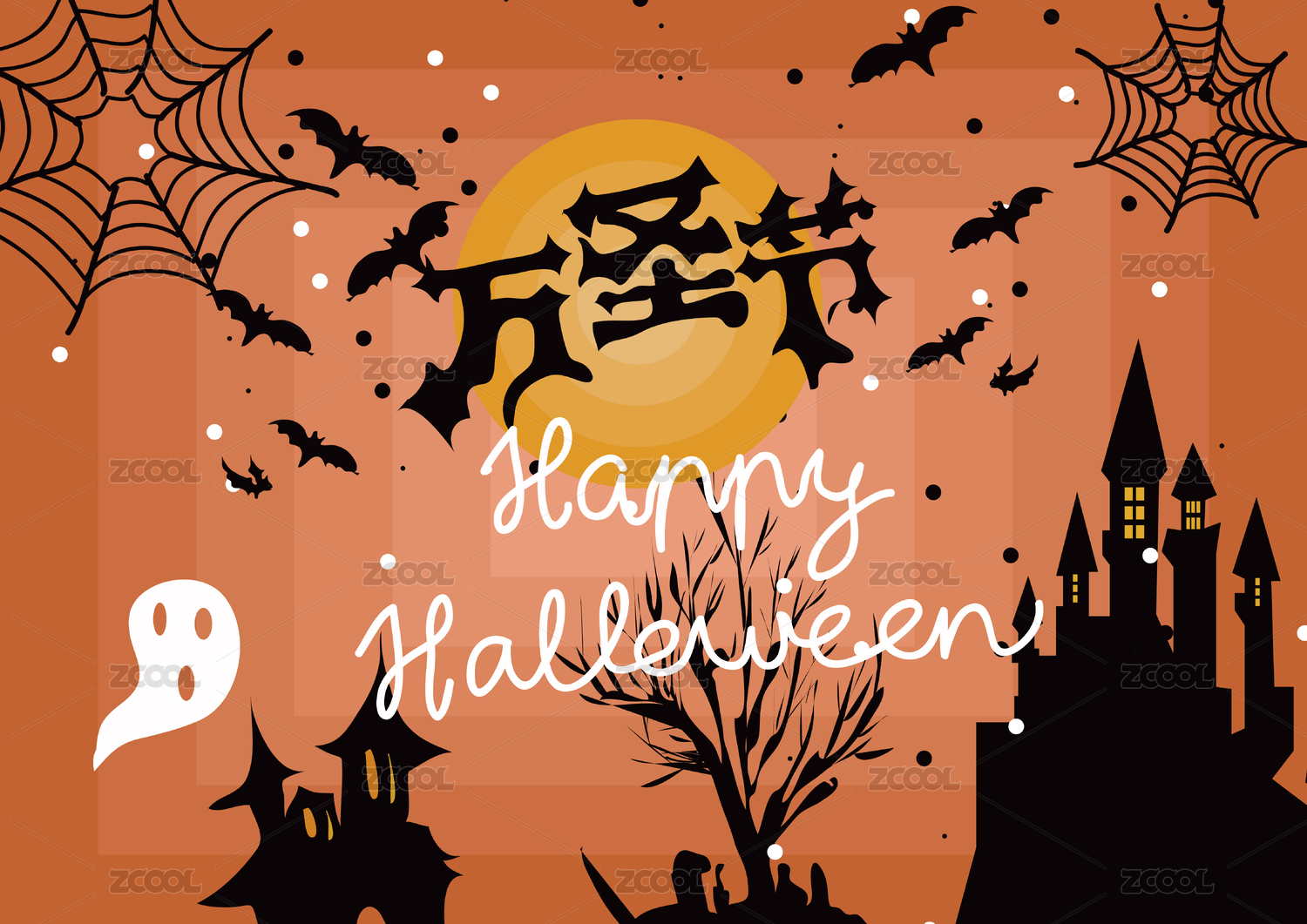 手繪矢量插畫海報萬圣節(jié)鬼節(jié)元素