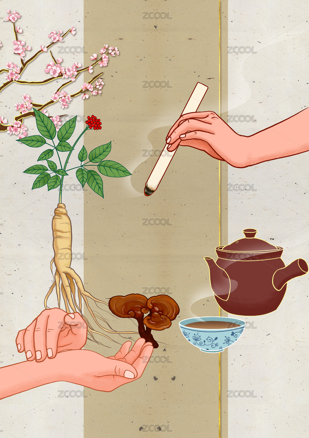 中醫(yī)中藥材及診治手法 國(guó)風(fēng)插畫