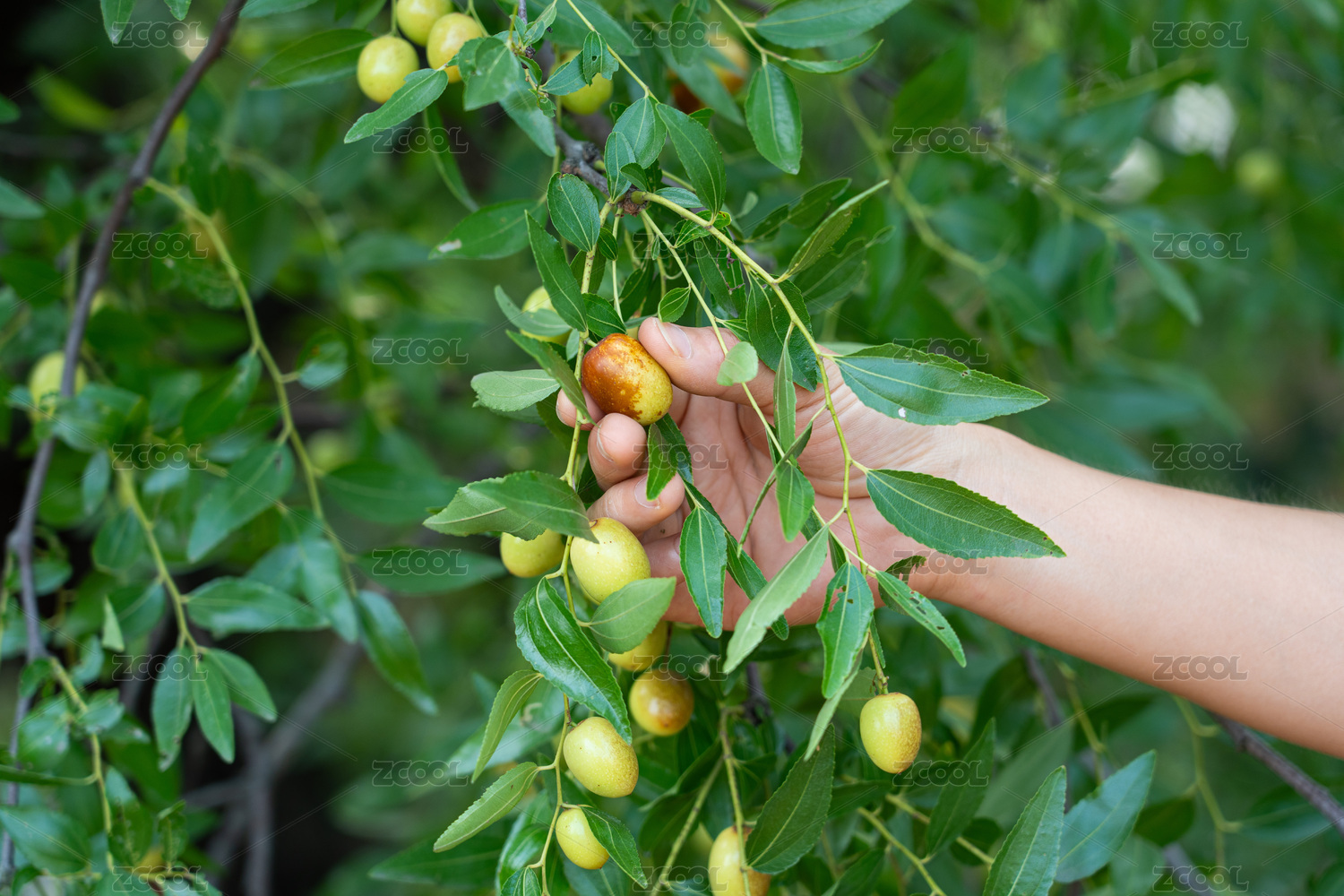 手摘棗樹上的棗子