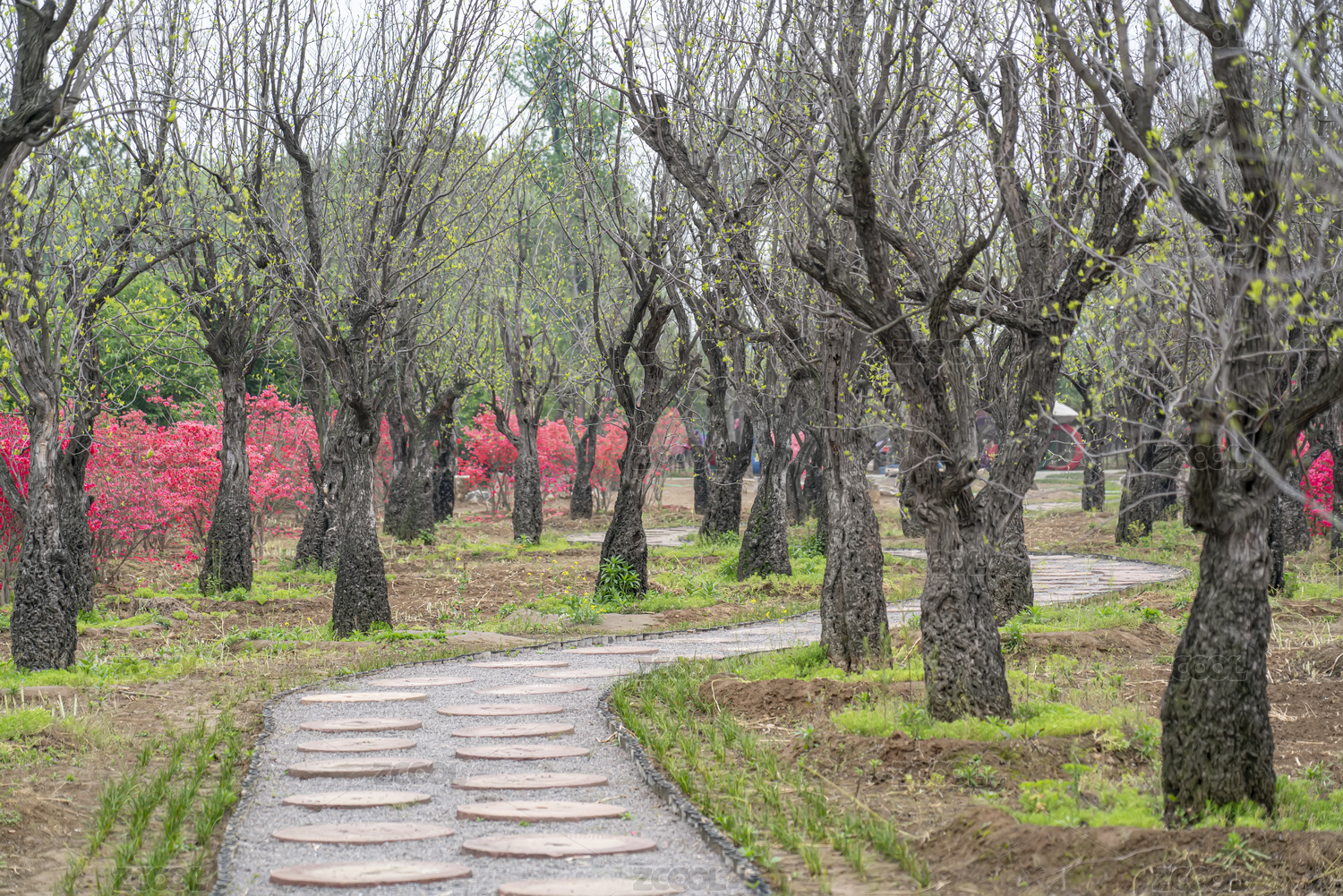 春季的老棗樹林和杜鵑花林