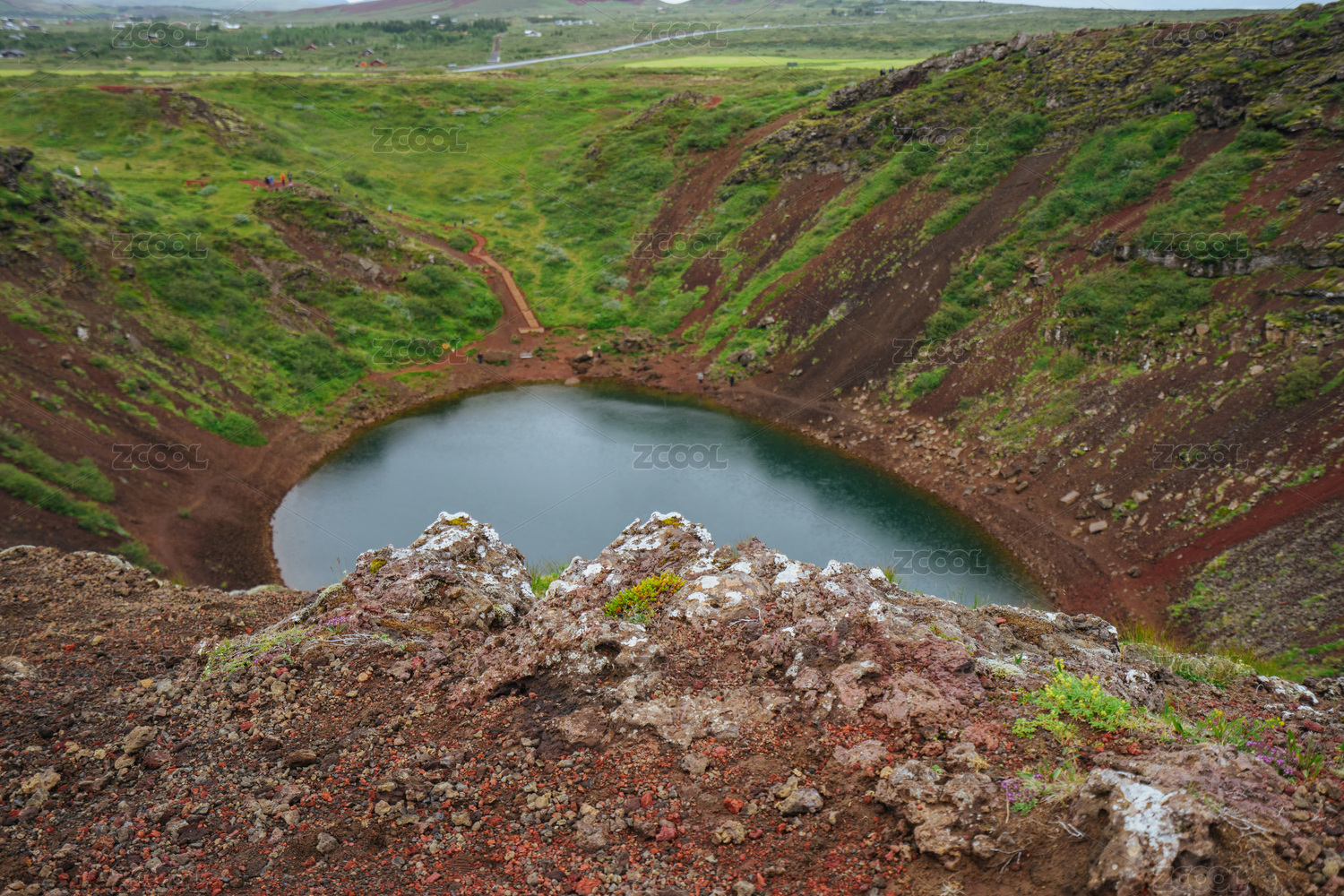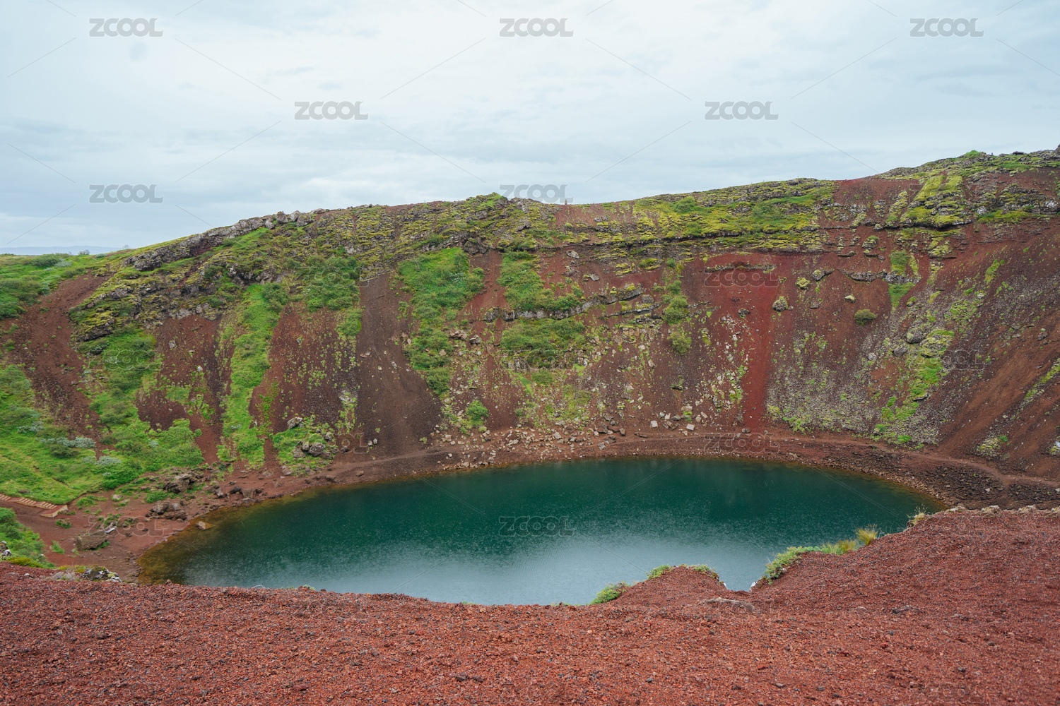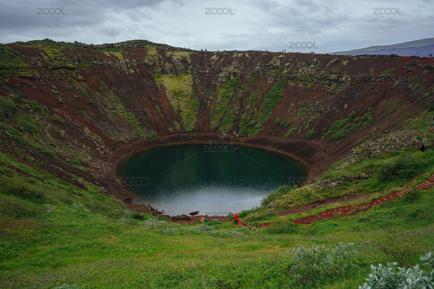 冰島美麗的Kerie火山口湖泊自然風(fēng)光