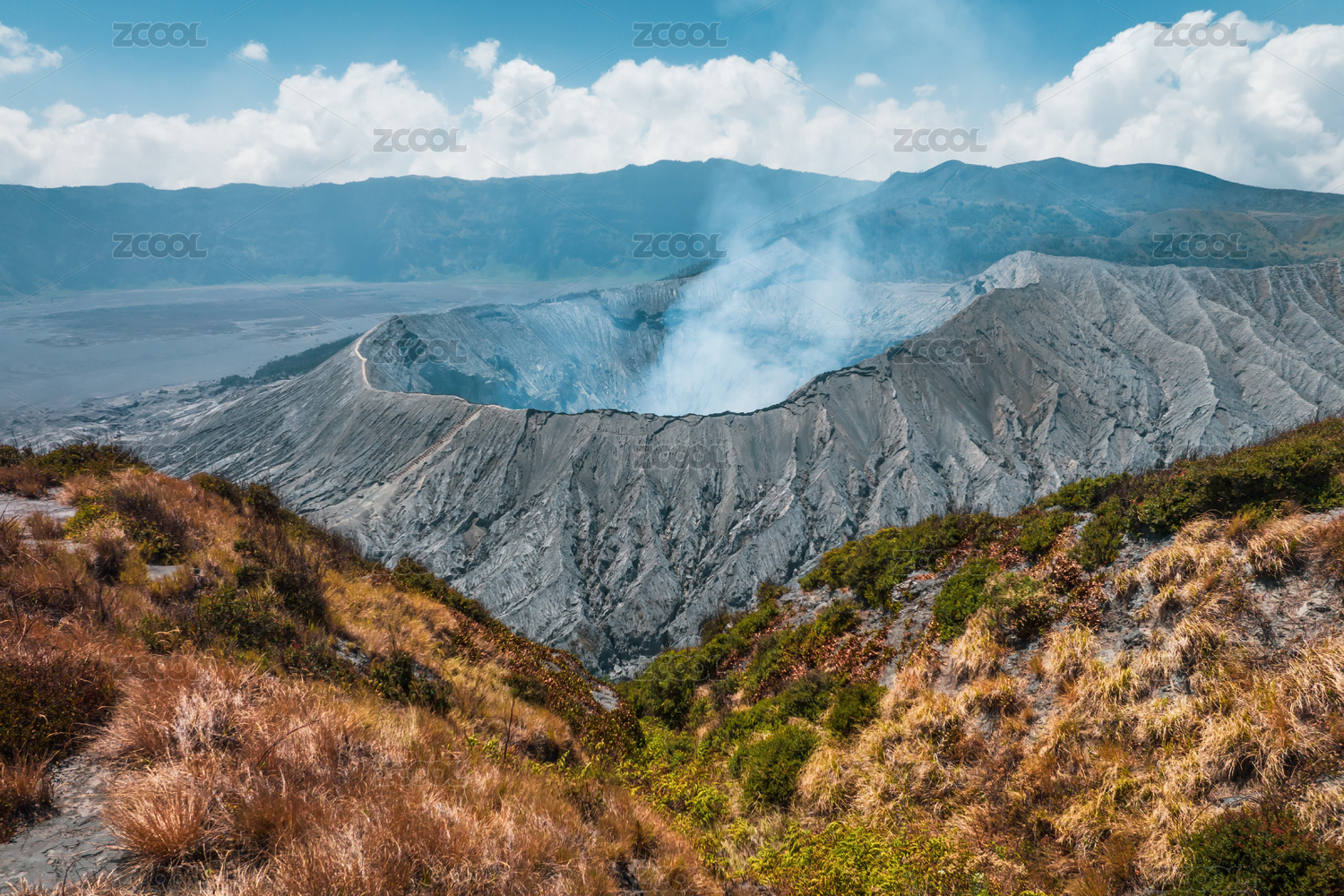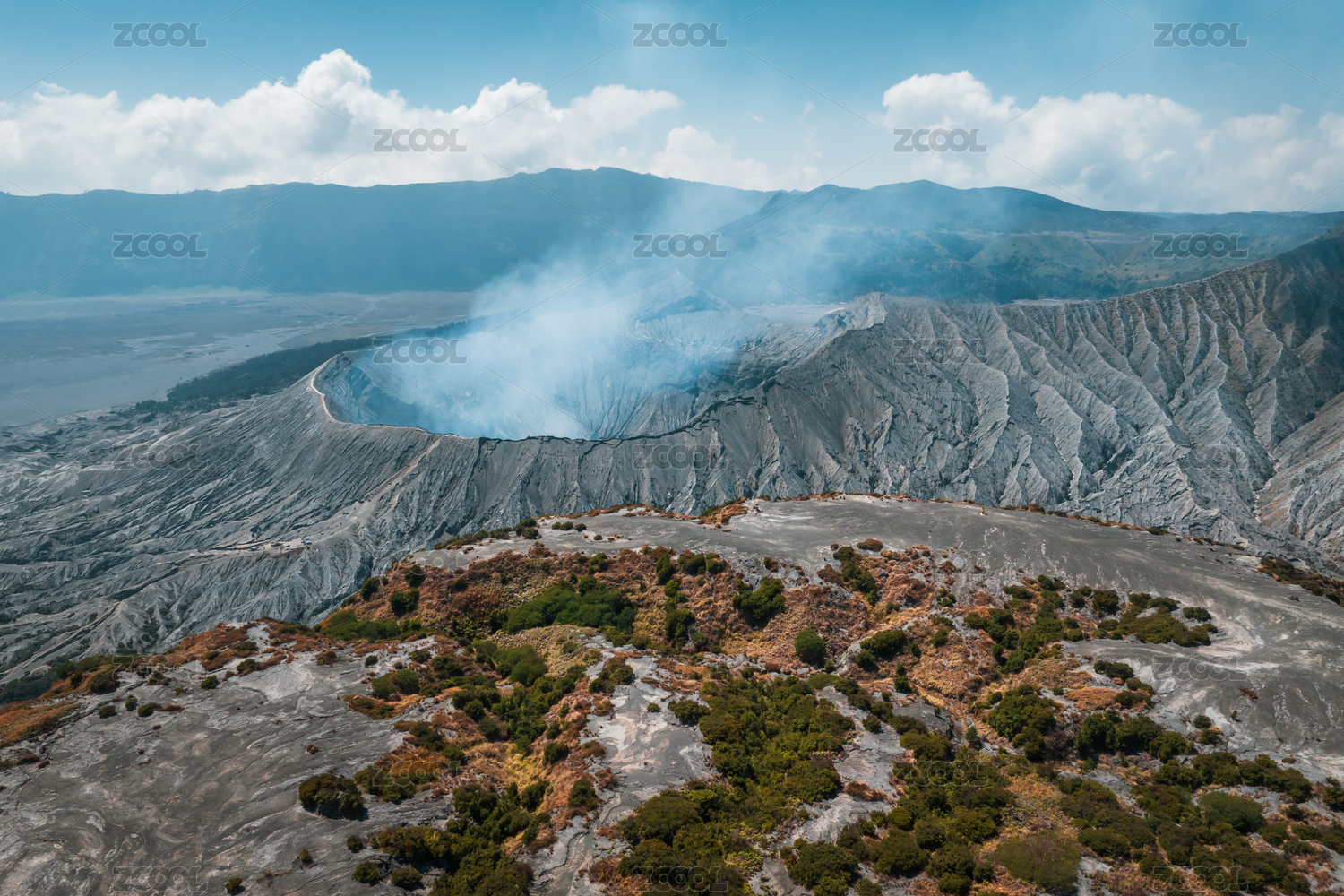 航拍印尼爪哇島布羅莫火山口