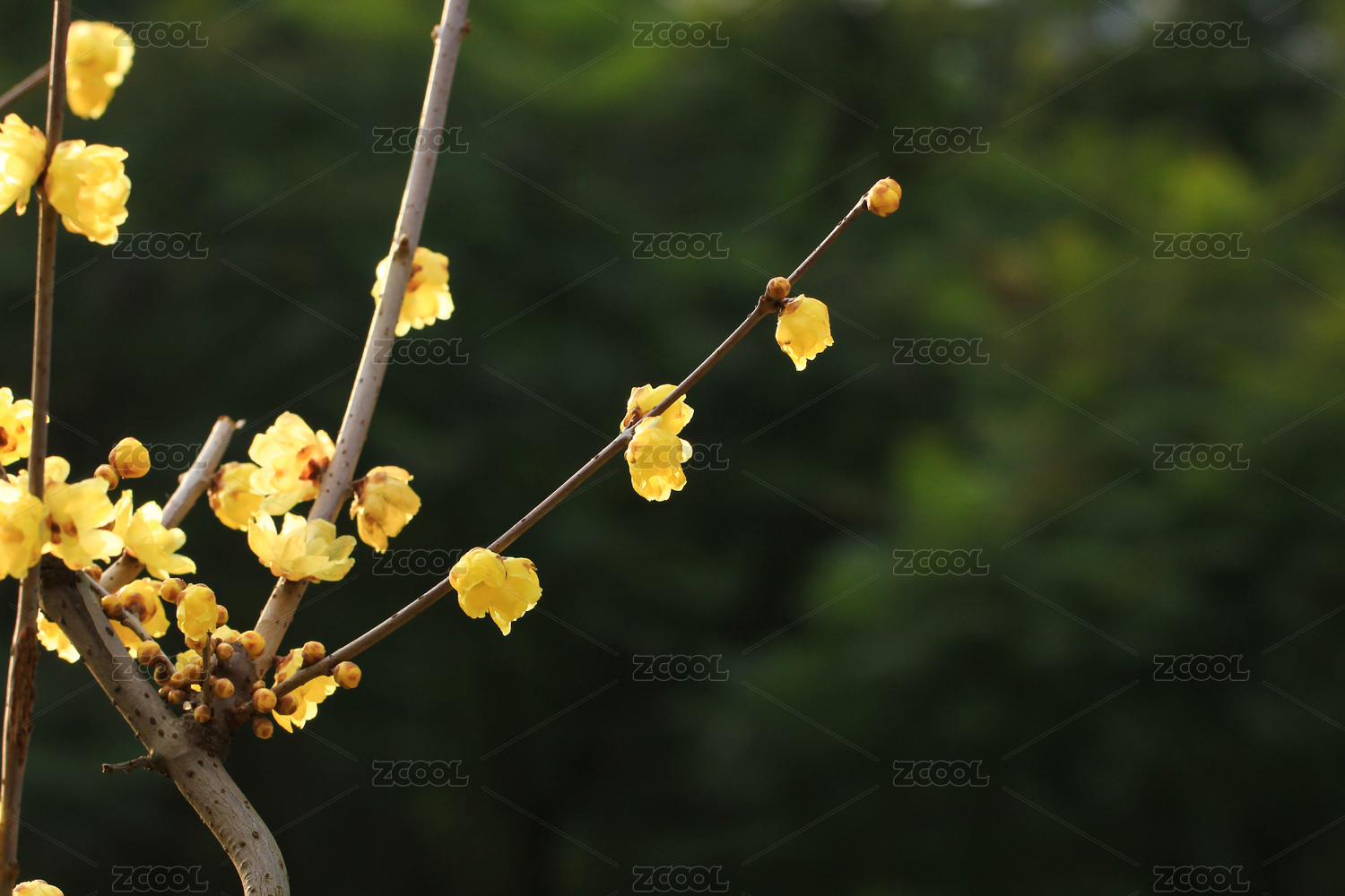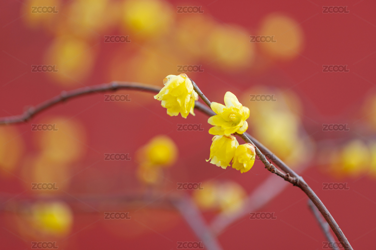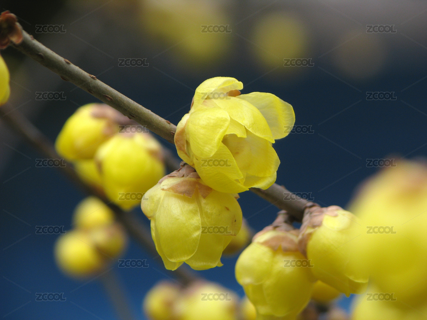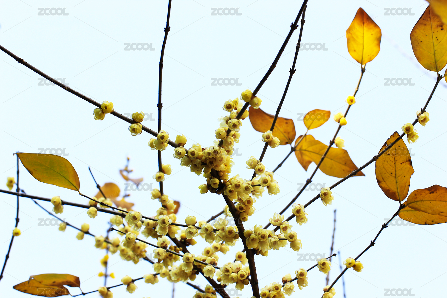冬天的蠟梅臘梅梅花枝葉特寫(xiě)鏡頭