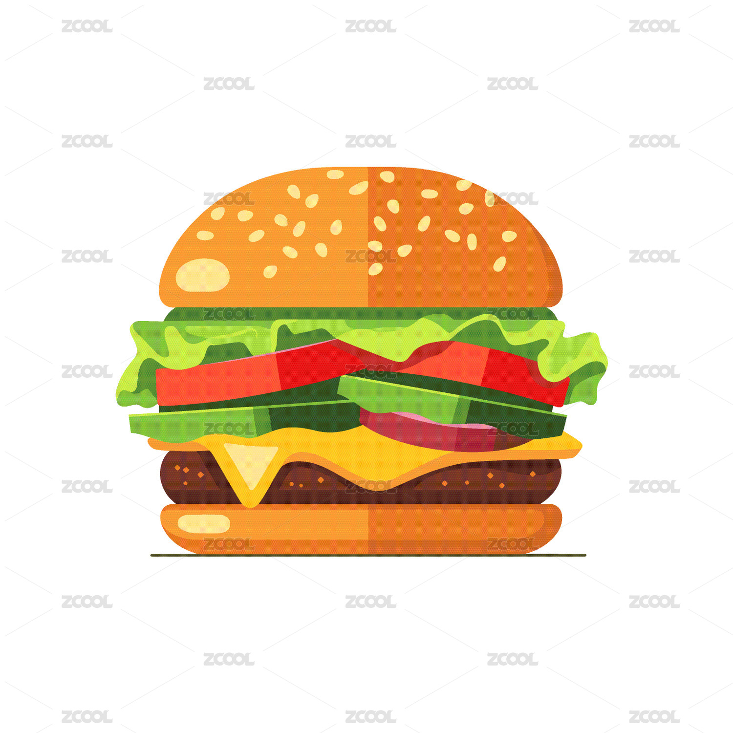 卡通美味漢堡夾著生菜、西紅柿和奶酪