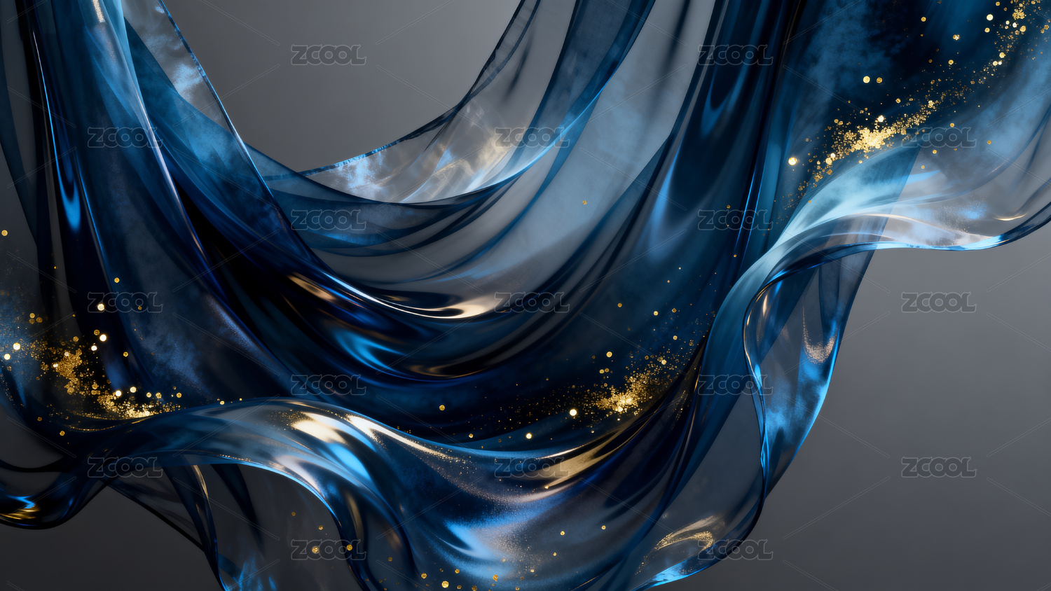 藍色紗幔飄逸光影流動