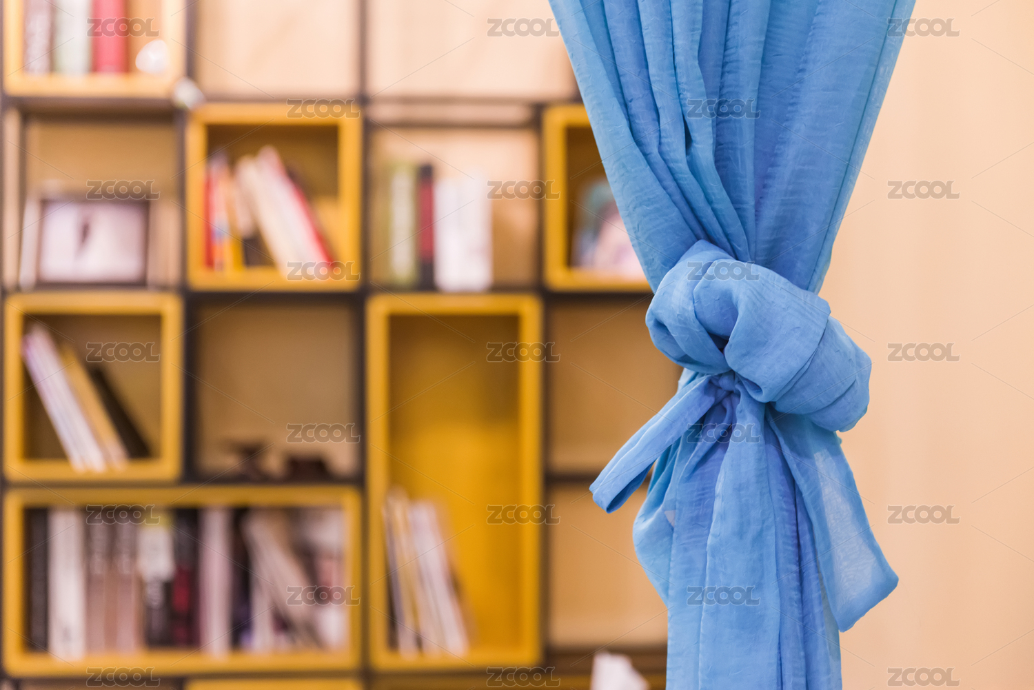 格子柜和藍色紗幔