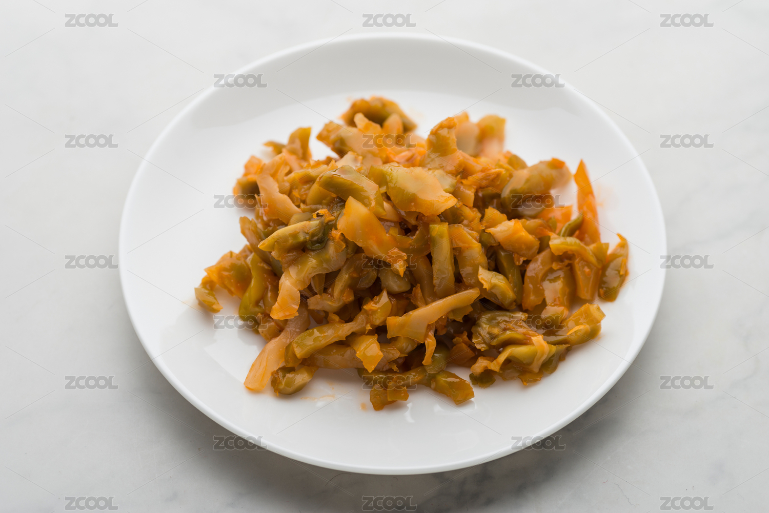 白瓷盤(pán)里脆嫩爽口的涪陵榨菜