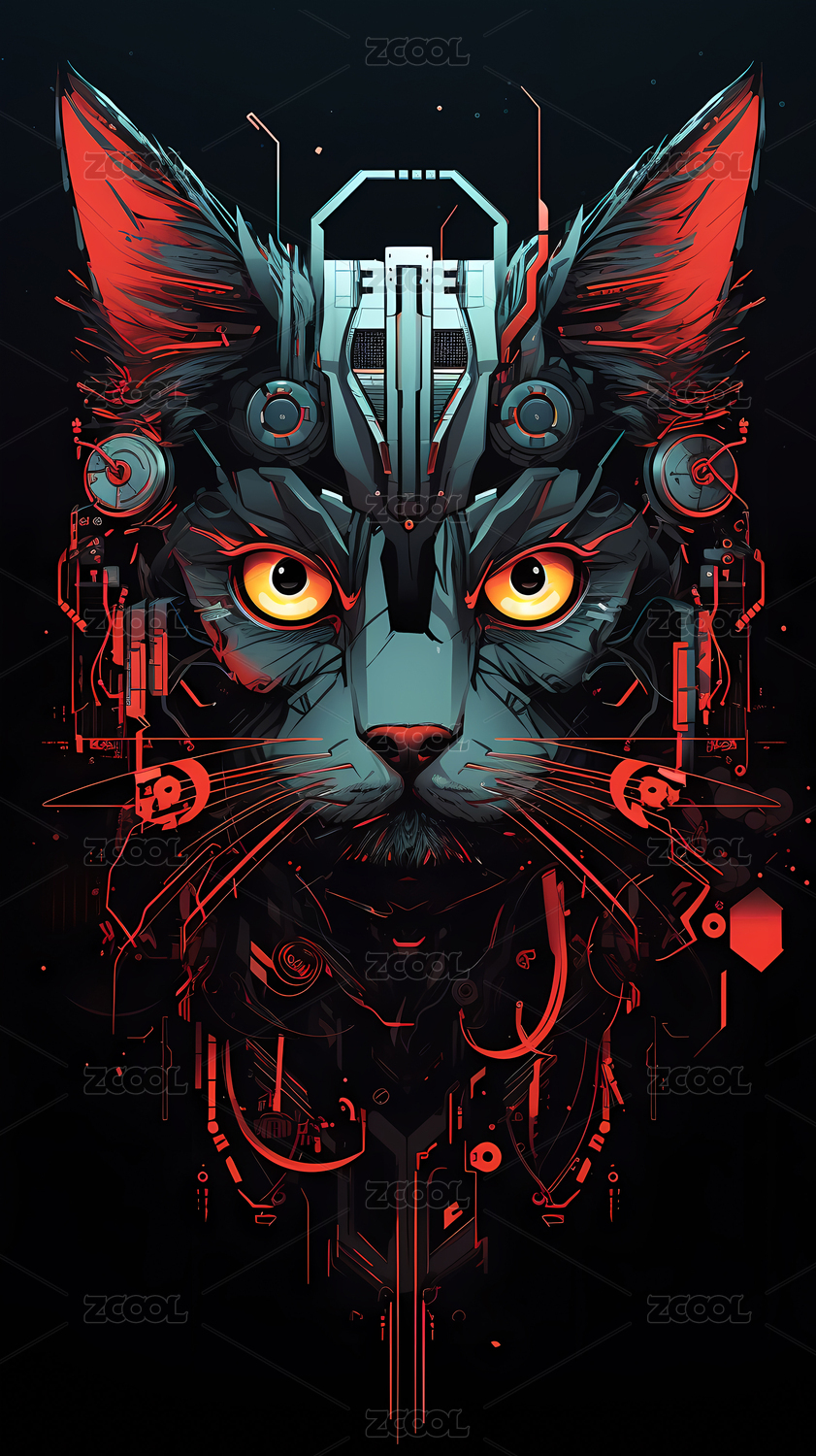 賽博朋克風(fēng)機(jī)械貓