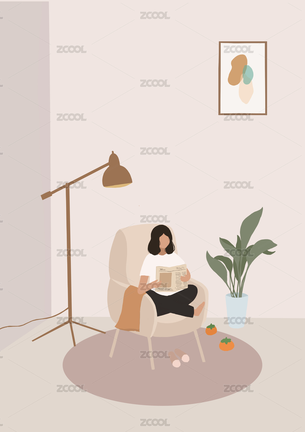 在沙發(fā)上看書的女生