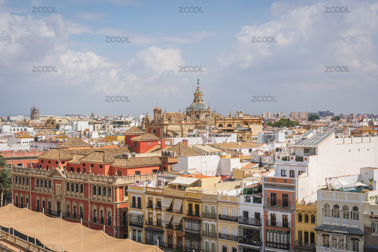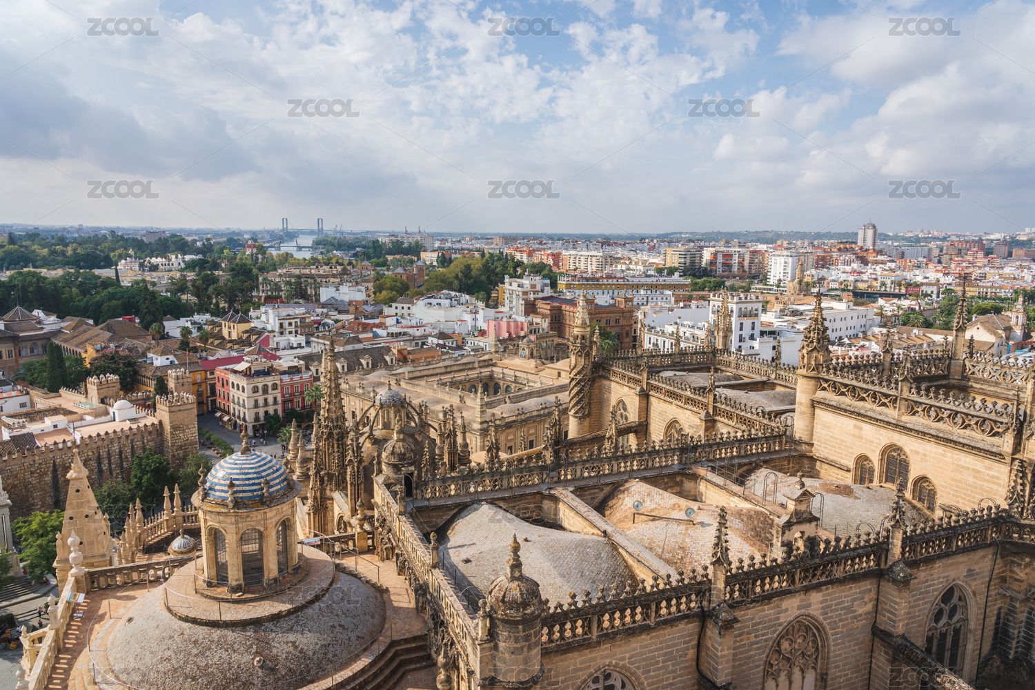 西班牙塞維利亞大教堂和城市天際線