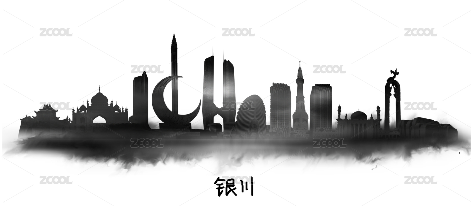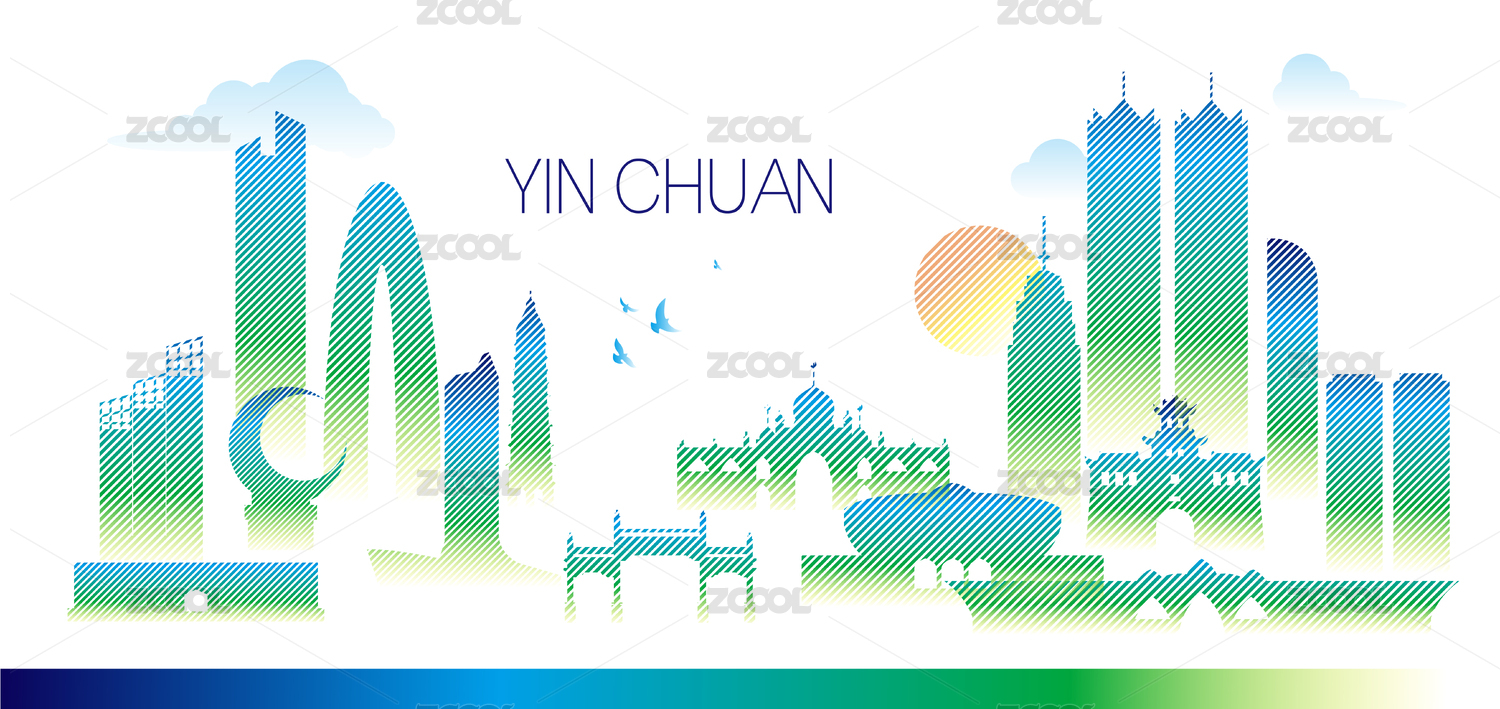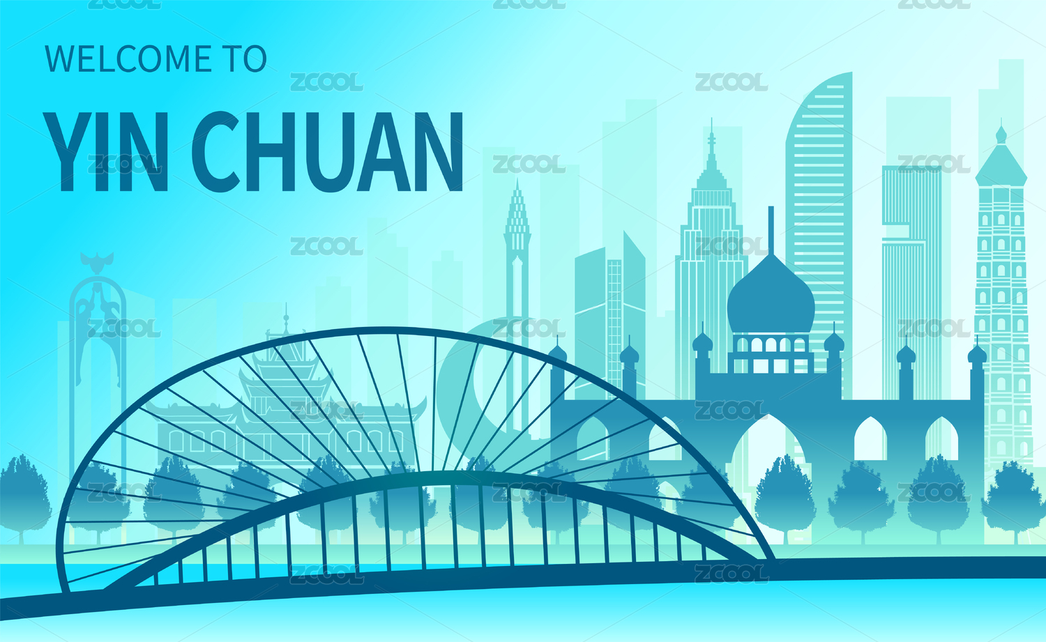 多彩銀川城市地標(biāo)建筑矢量插畫